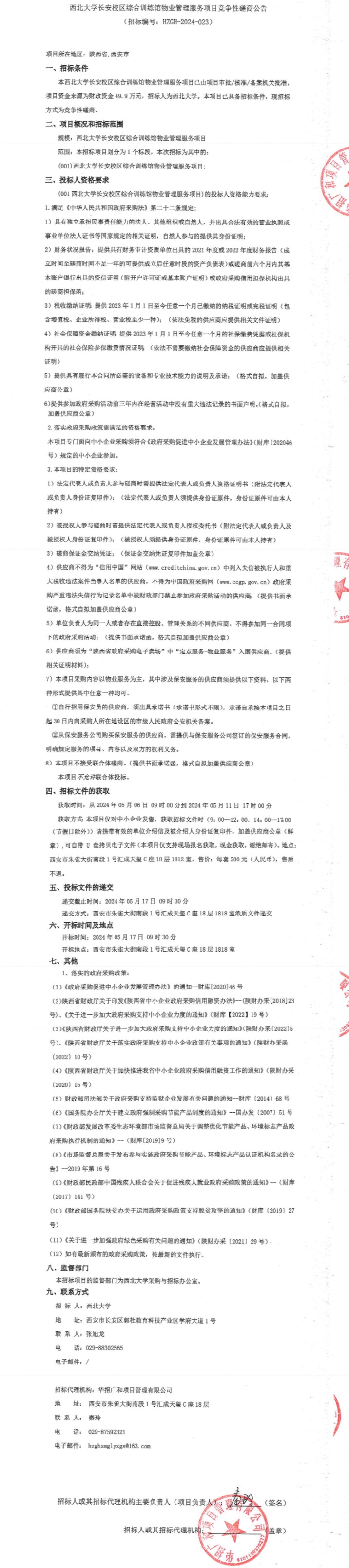 广发体育长安校区综合训练馆物业管理服务项目竞争性磋商公告
