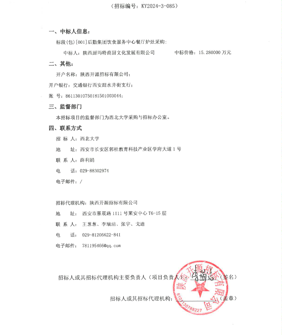 广发体育后勤集团饮食服务中心餐厅炉灶采购项目中标结果公示 作者: 编辑:采购与招标办公室 时间:2024-05-30 原公告链接:http://bulletin.sntba.com/resultBulletin/2024-05-29/1450382.html