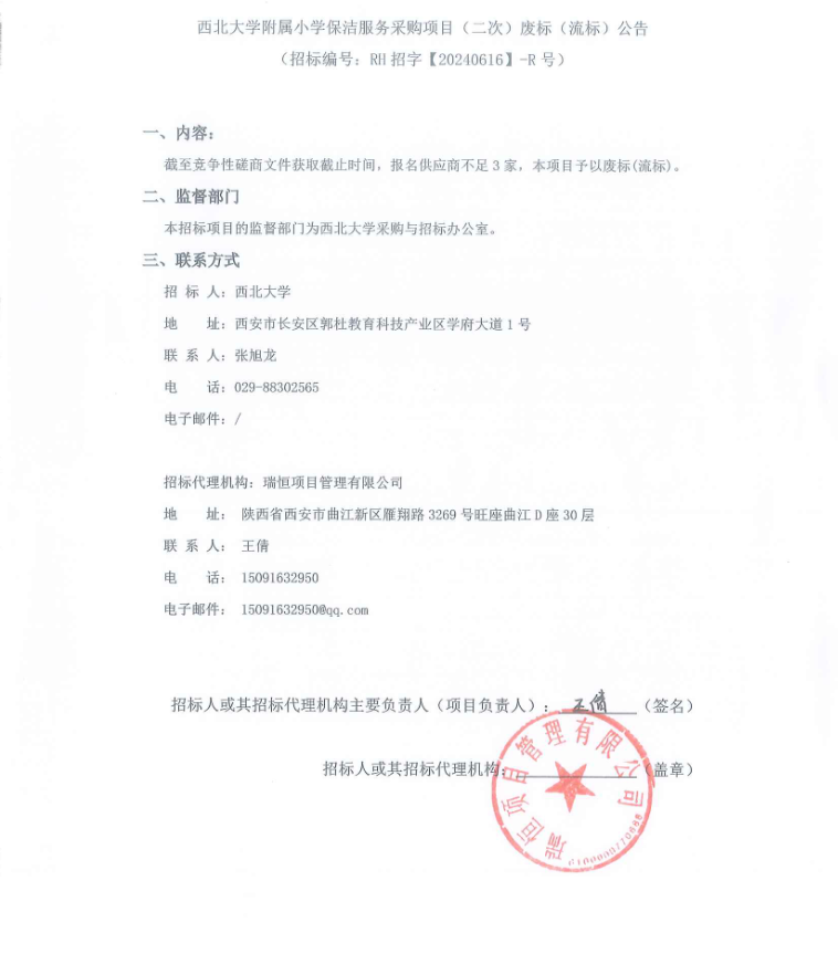 广发体育附属小学保洁服务采购项目(二次)废标(流标)公告