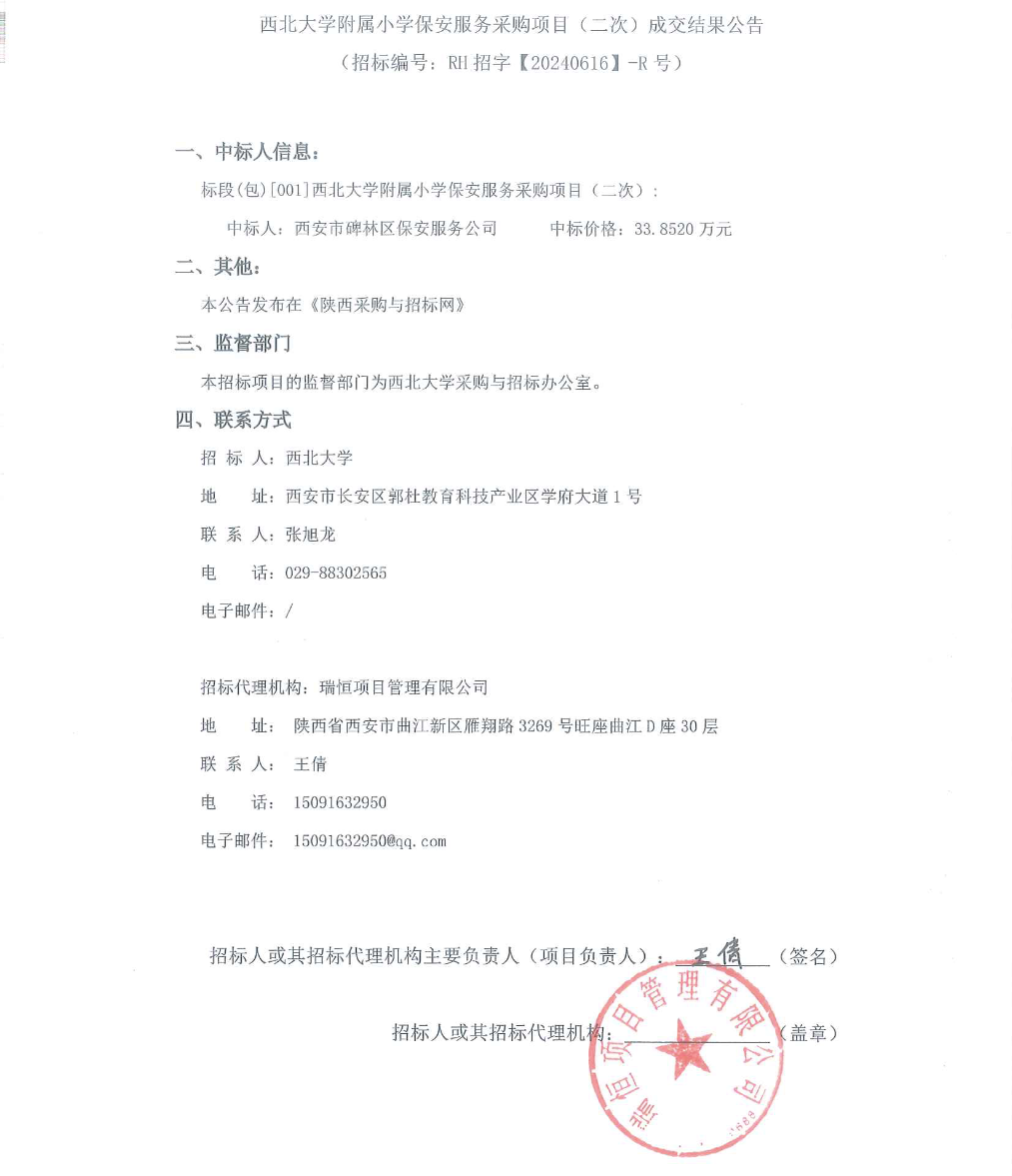 广发体育附属小学保安服务采购项目(二次)成交结果公告