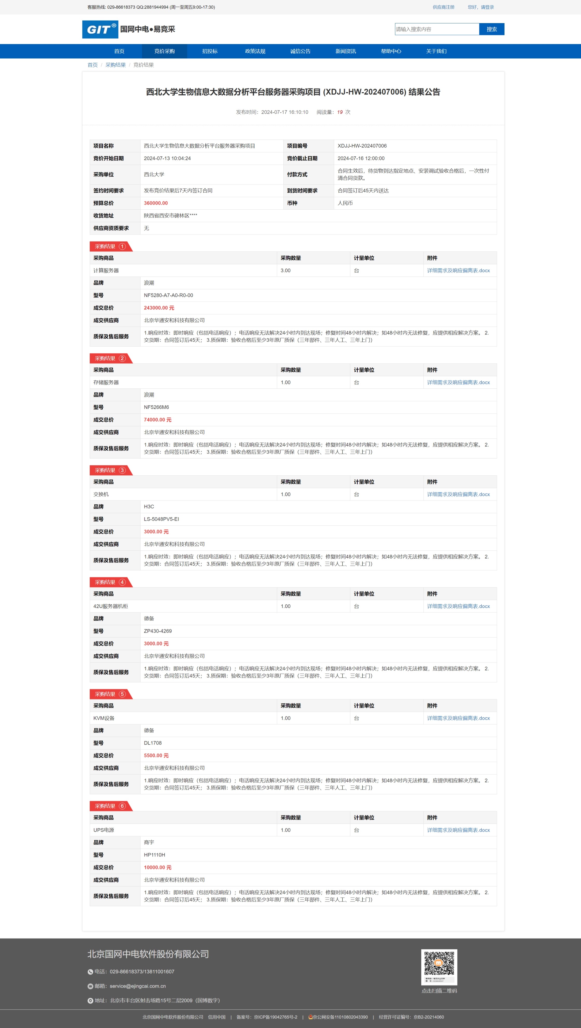 广发体育生物信息大数据分析平台服务器采购项目 (XDJJ-HW-202407006) 竞价结果公告 作者: 编辑:采购与招标办公室 时间:2024-07-17 原公告链接:https://www.ejingcai.com.cn/site/bidding/detail/11726