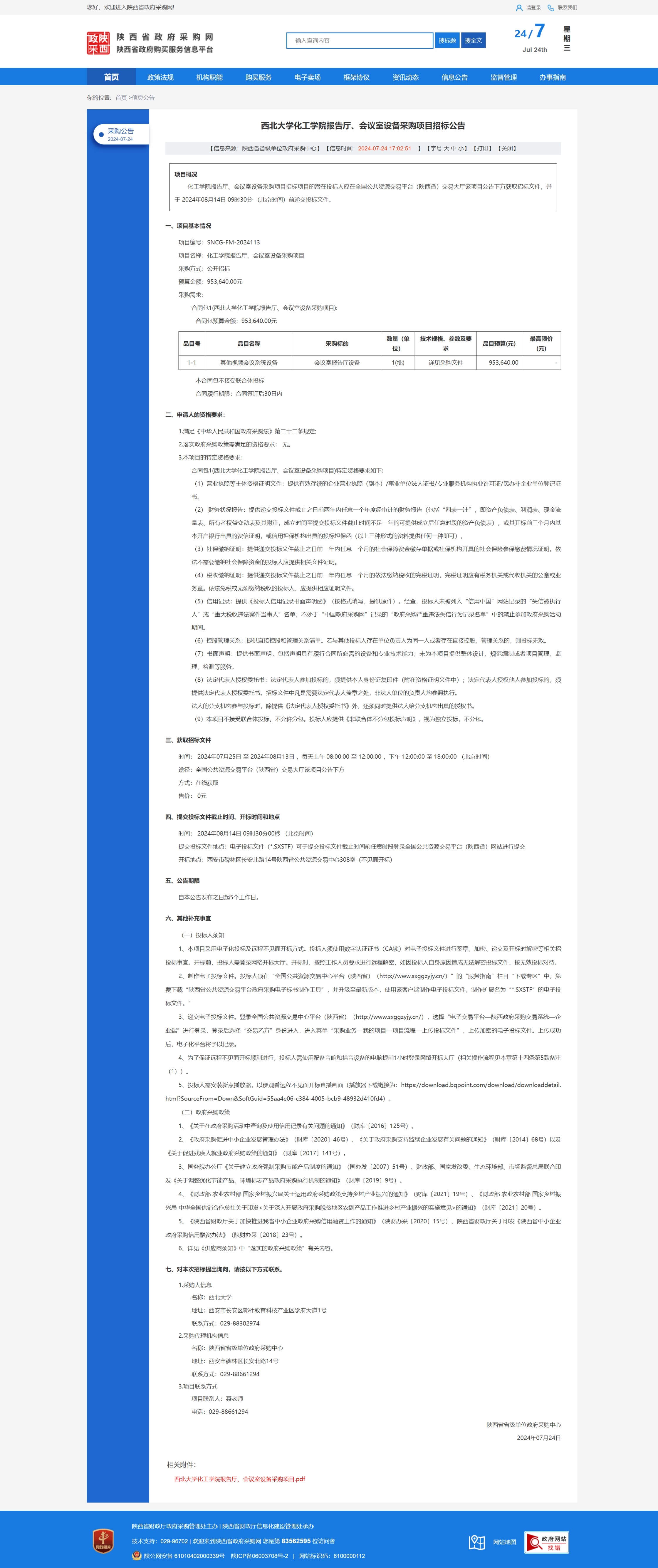 广发体育化工学院报告厅、会议室设备采购项目招标公告 作者: 编辑:采购与招标办公室 时间:2024-07-24 原公告链接:https://www.ccgp-shaanxi.gov.cn/freecms/site/shaanxi/ggxx/info/2024/8a69c43990e021d80190e2424f98406d.html?noticeType=001011¬iceId=9ce13ca5-499d-11ef-b8b6-08c0eb20c666