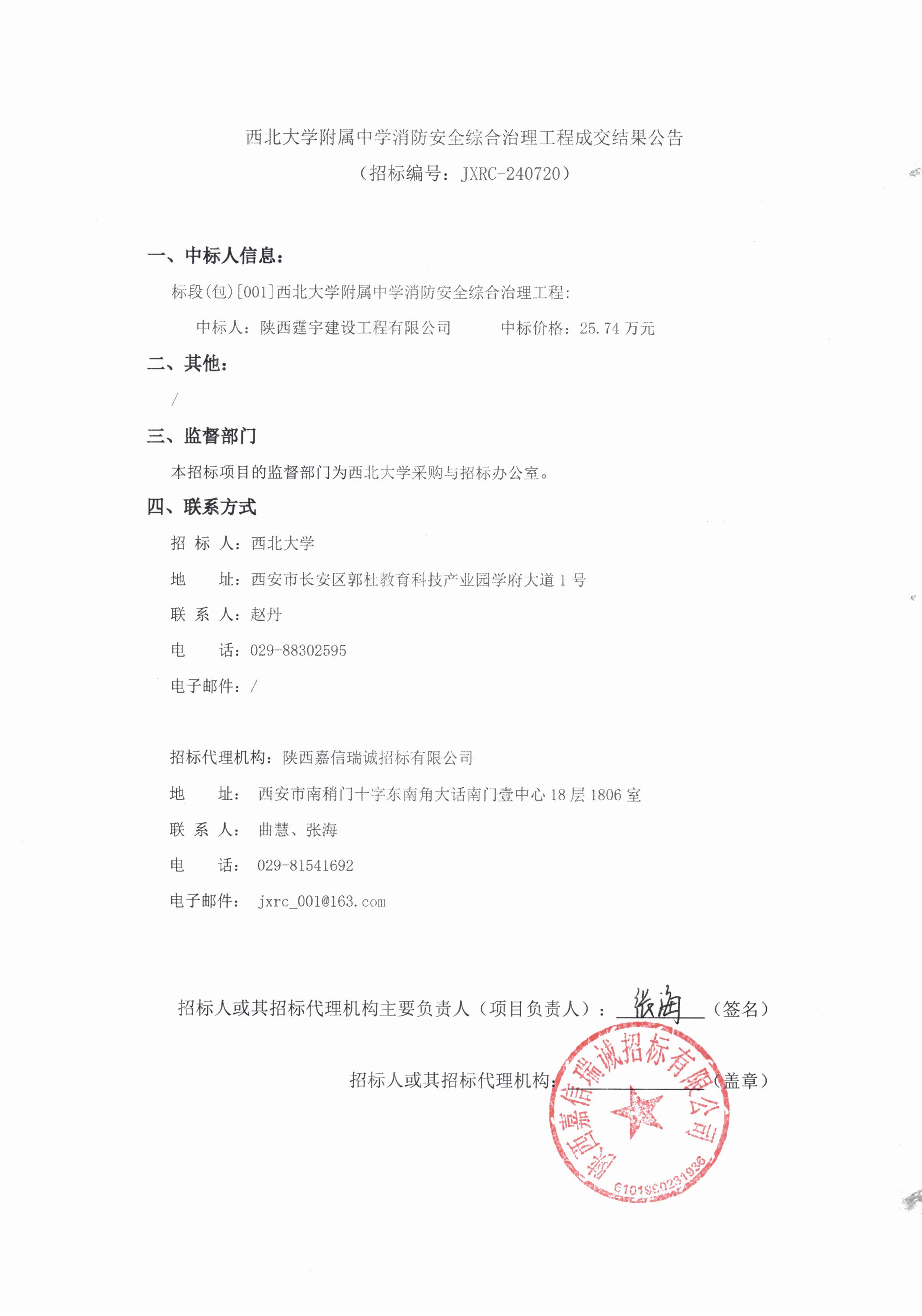 广发体育附属中学消防安全综合治理工程成交结果公告