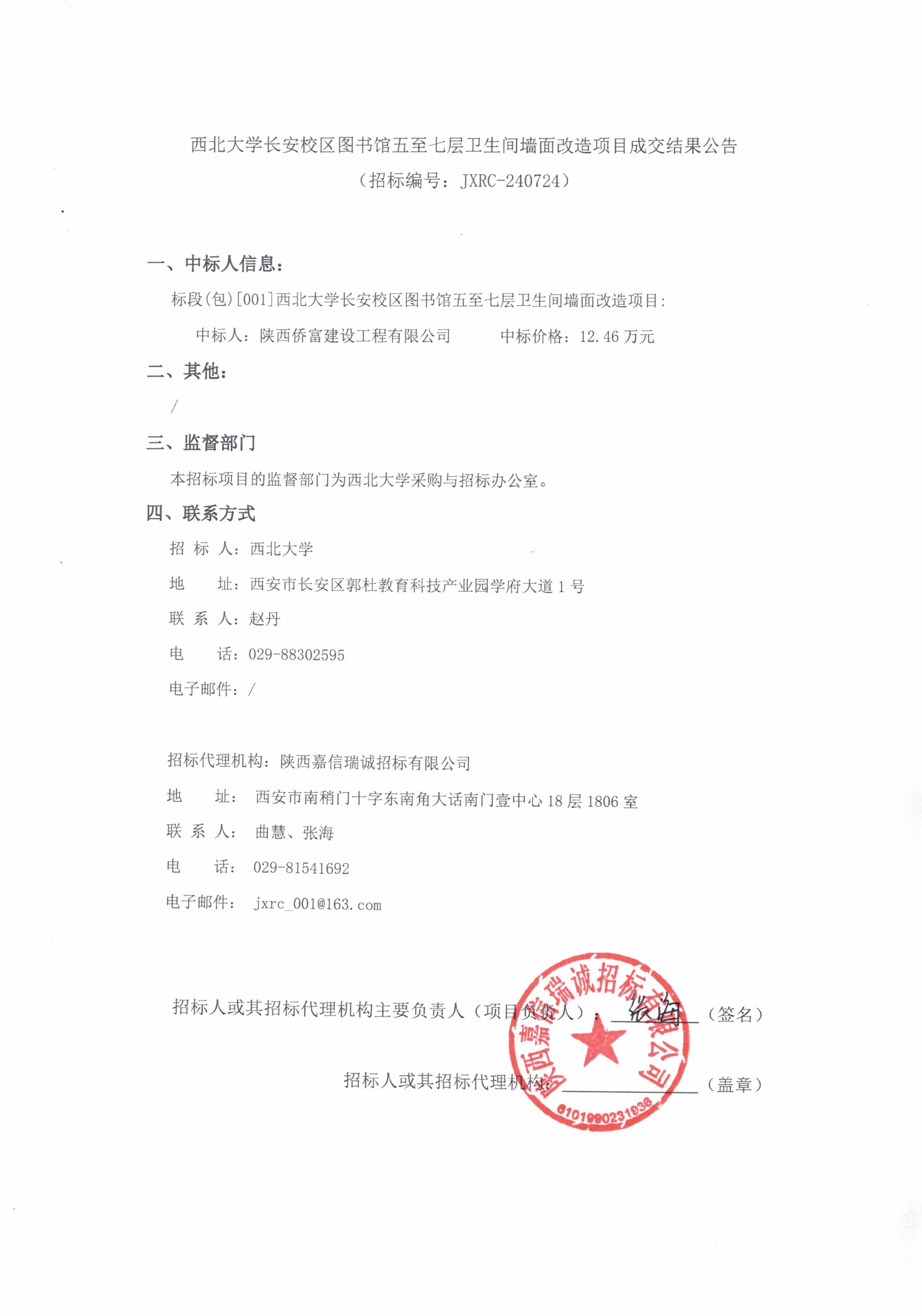 广发体育长安校区图书馆五至七层卫生间墙面改造项目成交结果公告