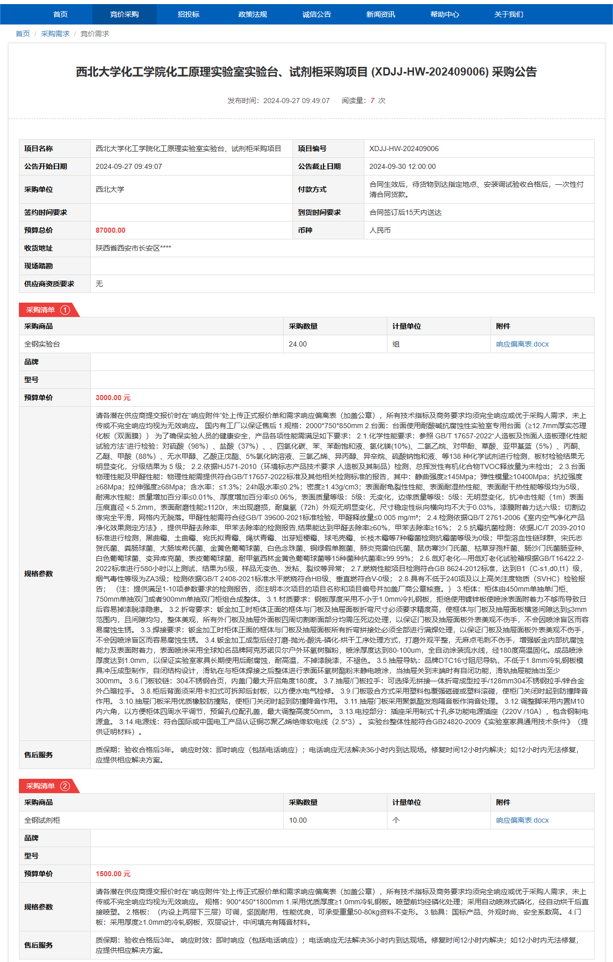 广发体育化工学院化工原理实验室实验台、试剂柜采购项目(XDJJ-HW-202409006)竞价采购公告 作者: 编辑: 时间:2024-09-27 原公告链接:https://www.ejingcai.com.cn/site/bidding/detail/12926