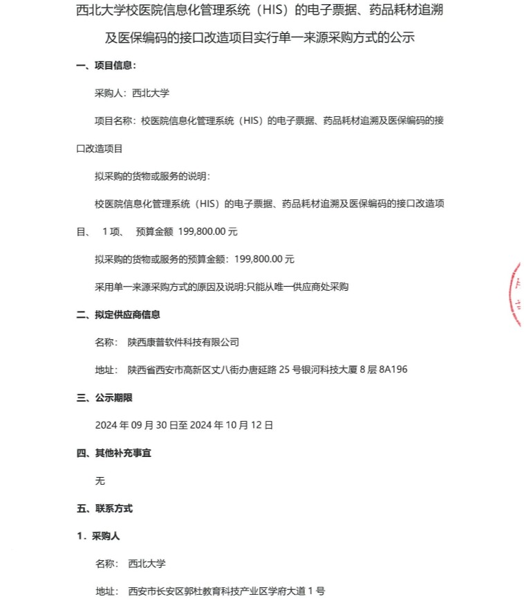 广发体育校医院信息化管理系统(HIS)电子票据、药品耗材追溯及医保编码接口改造服务项目实行单一来源采购方式的公示