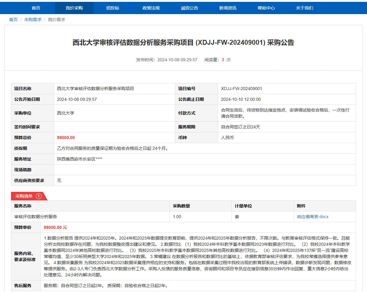 广发体育审核评估数据分析服务采购项目(XDJJ-FW-202409001)竞价采购公告 作者: 编辑: 时间:2024-10-08 原公告链接:https://www.ejingcai.com.cn/site/bidding/detail/13071
