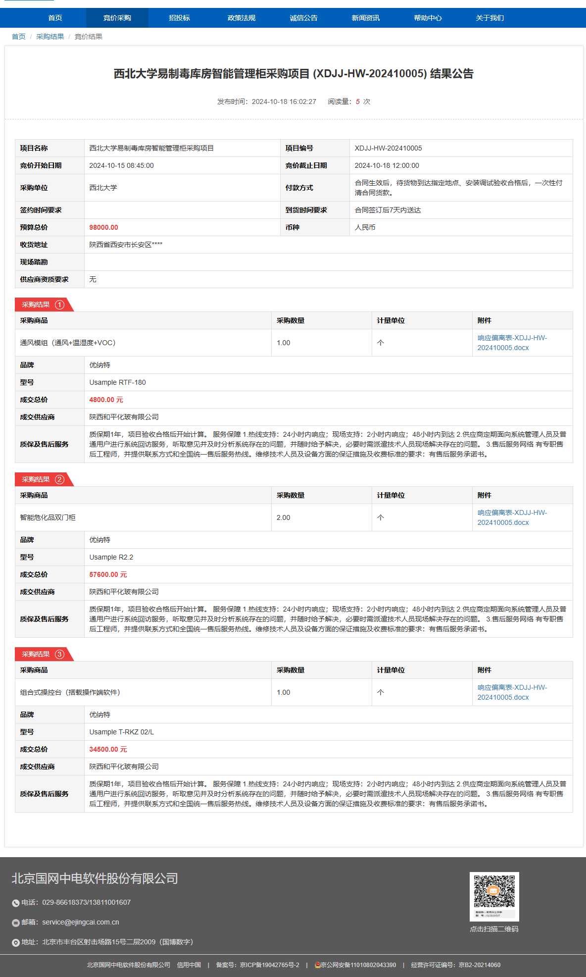 广发体育易制毒库房智能管理柜采购项目(XDJJ-HW-202410005)竞价结果公告 作者:采购与招标办公室 编辑: 时间:2024-10-18 原公告链接:https://www.ejingcai.com.cn/site/bidding/detail/13487