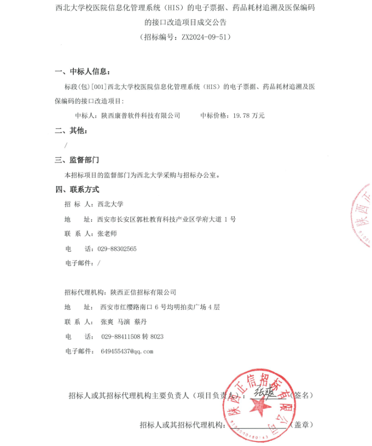 广发体育校医院信息化管理系统(HIS)的电子票据、药品耗材追溯及医保编码的接口改造项目成交公告
