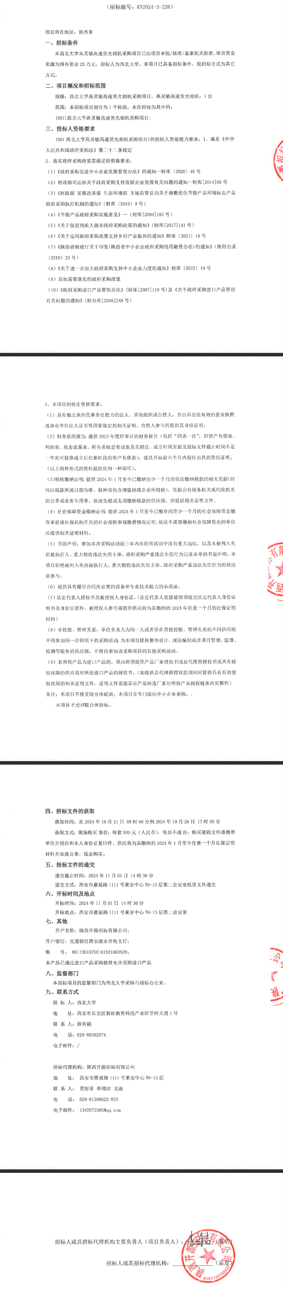 广发体育高灵敏高速荧光相机采购项目竞争性磋商公告 作者: 编辑:采购与招标办公室 时间:2024-10-21 原公告链接:http://bulletin.sntba.com/biddingBulletin/2024-10-21/1932717.html