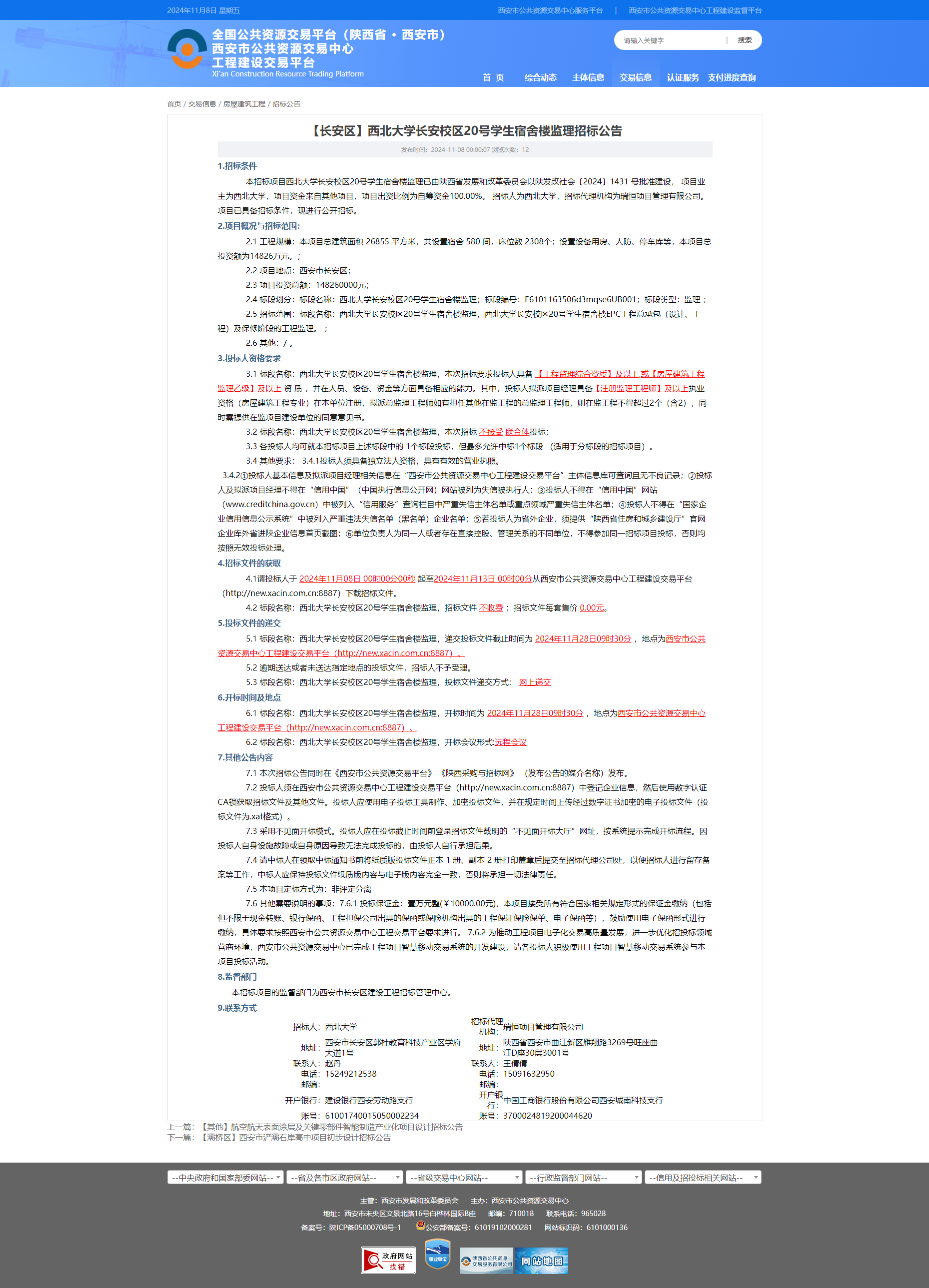 广发体育长安校区20号学生宿舍楼监理招标公告
