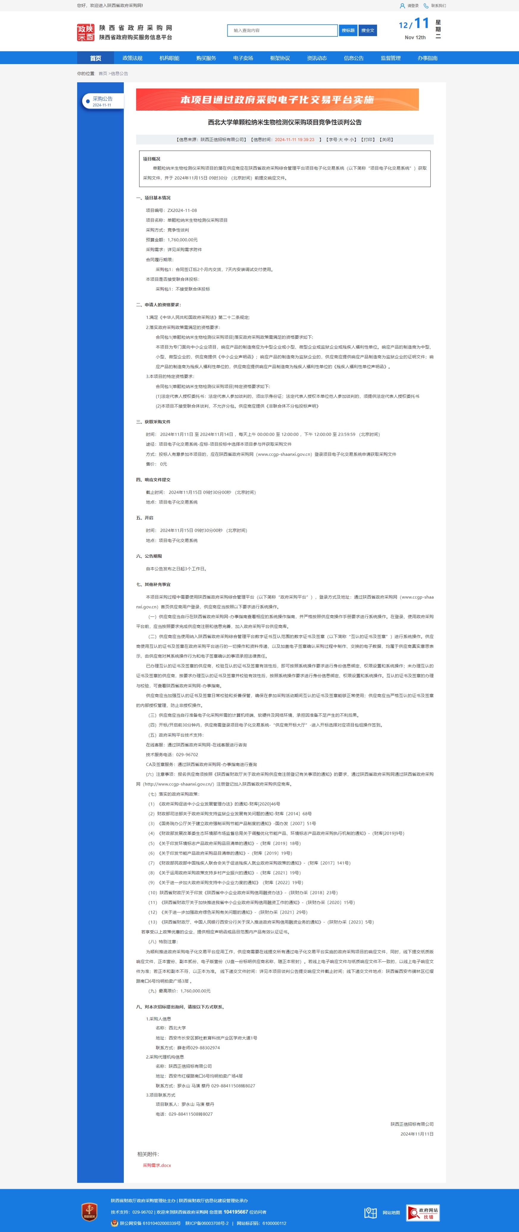 广发体育单颗粒纳米生物检测仪采购项目竞争性谈判公告 作者: 编辑:薛利娟 时间:2024-11-12 原公告链接:https://www.ccgp-shaanxi.gov.cn/freecms/site/shaanxi/ggxx/info/2024/8a69c5a59218576d01931ae5a92607ad.html?noticeType=001013¬iceId=29519790-a023-11ef-8063-08c0eb20c666