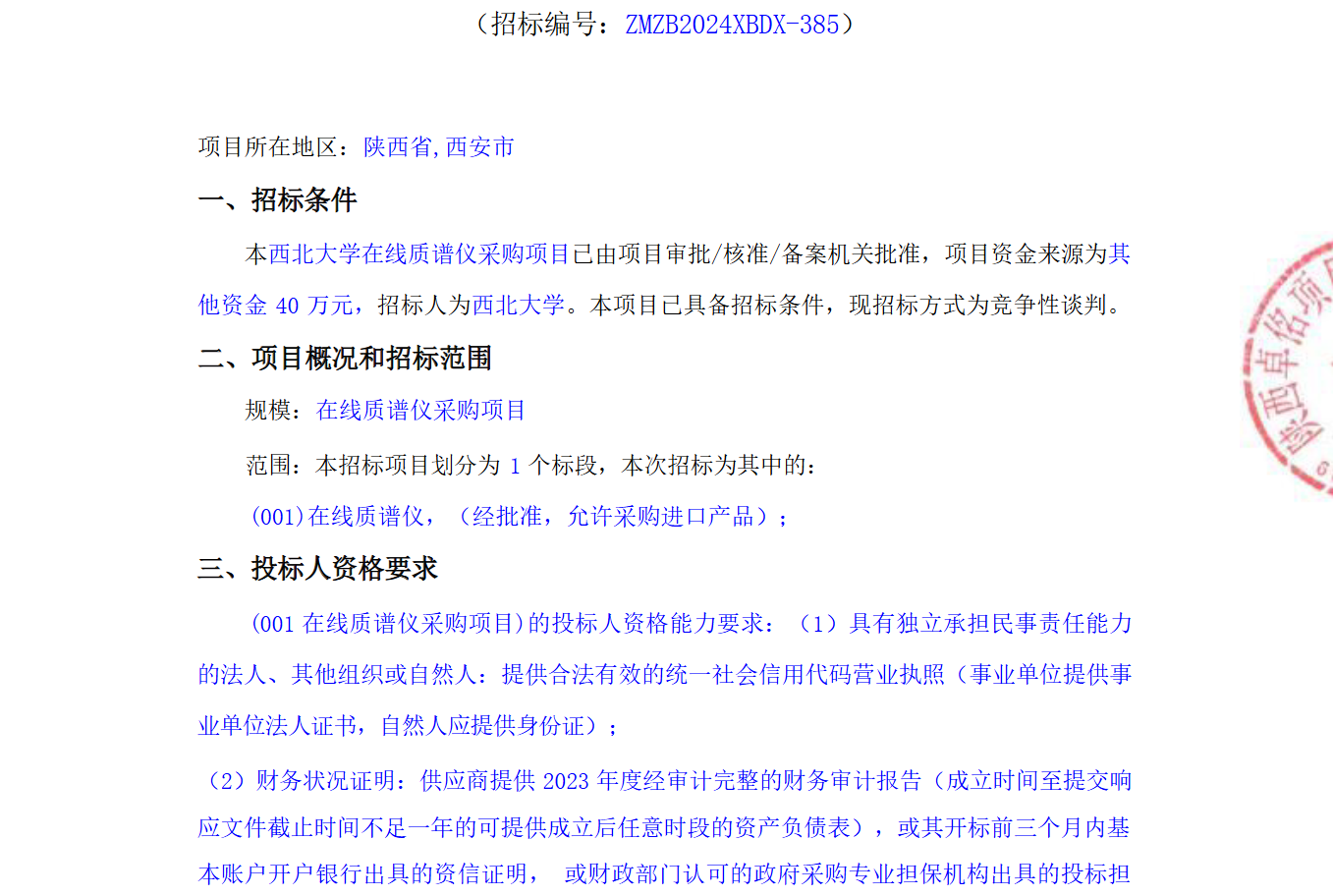 广发体育在线质谱仪采购项目竞争性谈判公告 作者: 编辑:薛利娟 时间:2024-11-12 原公告链接:http://bulletin.sntba.com/biddingBulletin/2024-11-12/1982831.html
