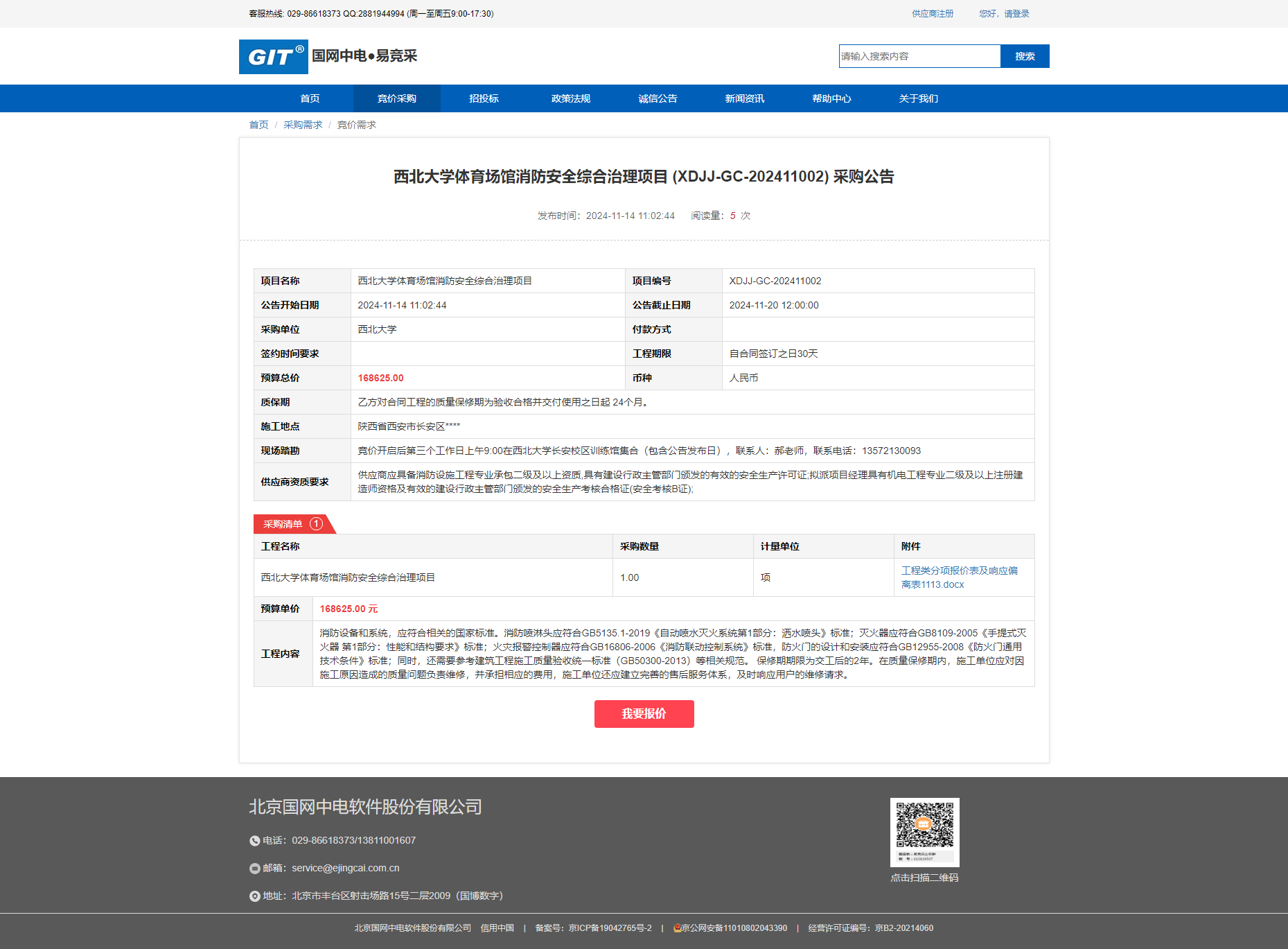 广发体育体育场馆消防安全综合治理项目 (XDJJ-GC-202411002) 采购公告