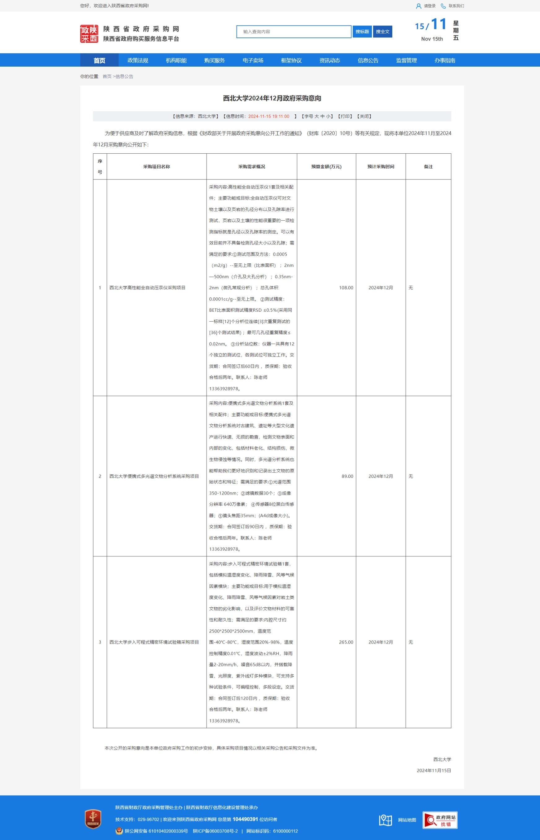 广发体育2024年12月政府采购意向(丝绸之路文化遗产保护实验平台2) 作者: 编辑:薛利娟 时间:2024-11-15 原公告链接:https://www.ccgp-shaanxi.gov.cn/freecms/site/shaanxi/ggxx/info/2024/8a69c037932429a301932f7f7f544a1e.html?noticeType=59¬iceId=dd1c3365-a343-11ef-8063-08c0eb20c666