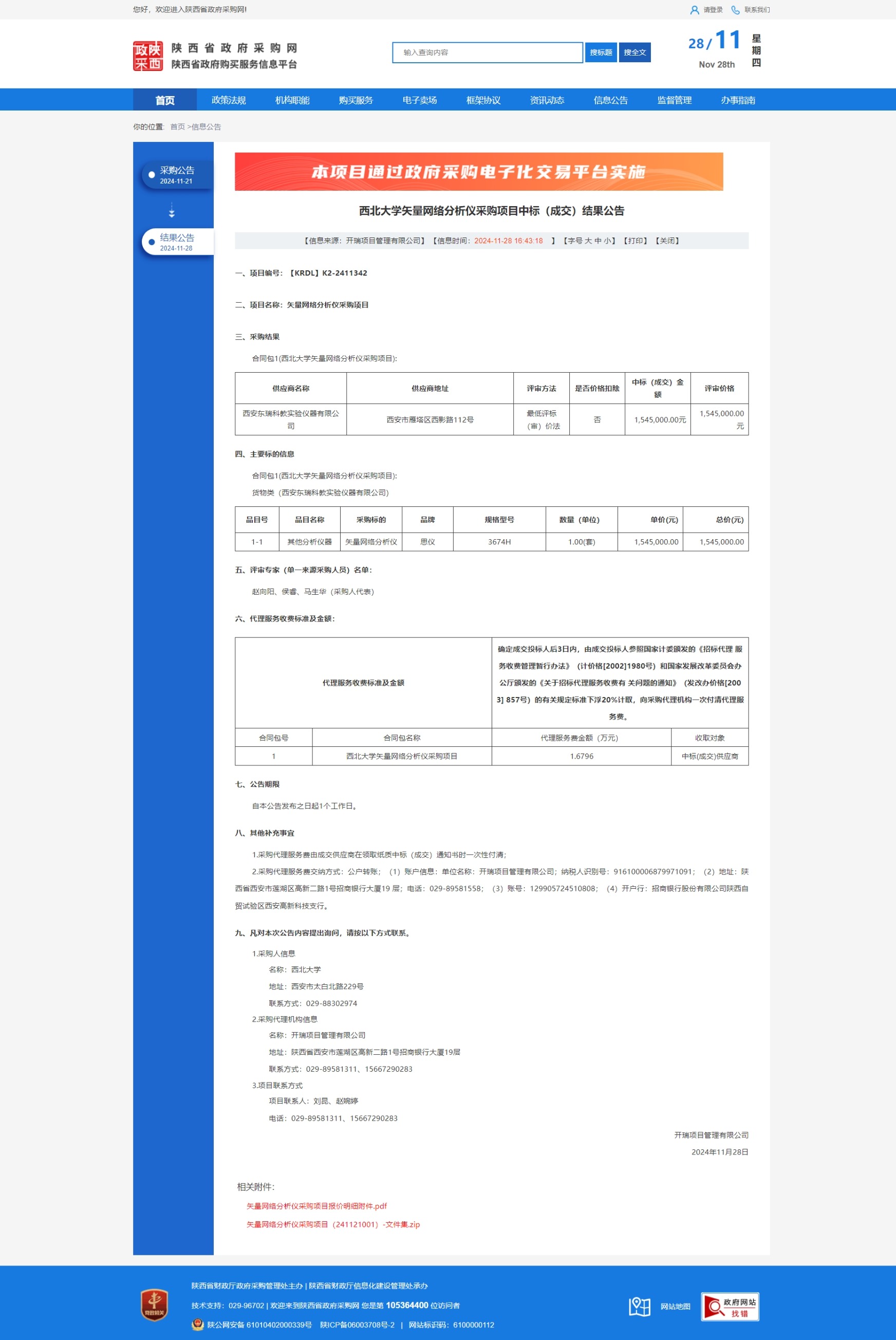 广发体育矢量网络分析仪采购项目中标(成交)结果公告 作者: 编辑:薛利娟 时间:2024-11-28 原公告链接:https://www.ccgp-shaanxi.gov.cn/freecms/site/shaanxi/ggxx/info/2024/8a69c44e9218572b019371e2bf985e3c.html?noticeType=001023¬iceId=690e3458-ad66-11ef-8063-08c0eb20c666