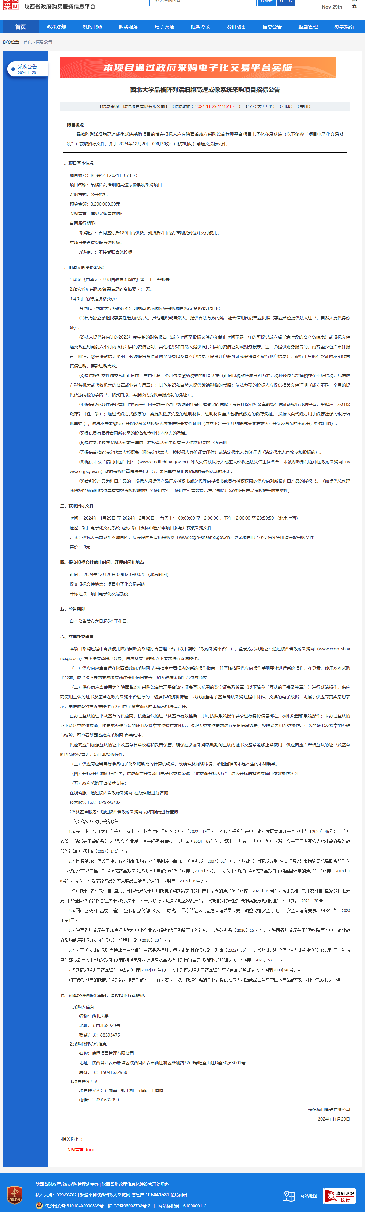 广发体育晶格阵列活细胞高速成像系统采购项目招标公告 作者:采购与招标办公室 编辑: 时间:2024-11-29 原公告链接:https://www.ccgp-shaanxi.gov.cn/freecms/site/shaanxi/ggxx/info/2024/8a69c5a59218576d019375dfd49370a6.html?noticeType=001011¬iceId=f0ae5699-ae05-11ef-8063-08c0eb20c666