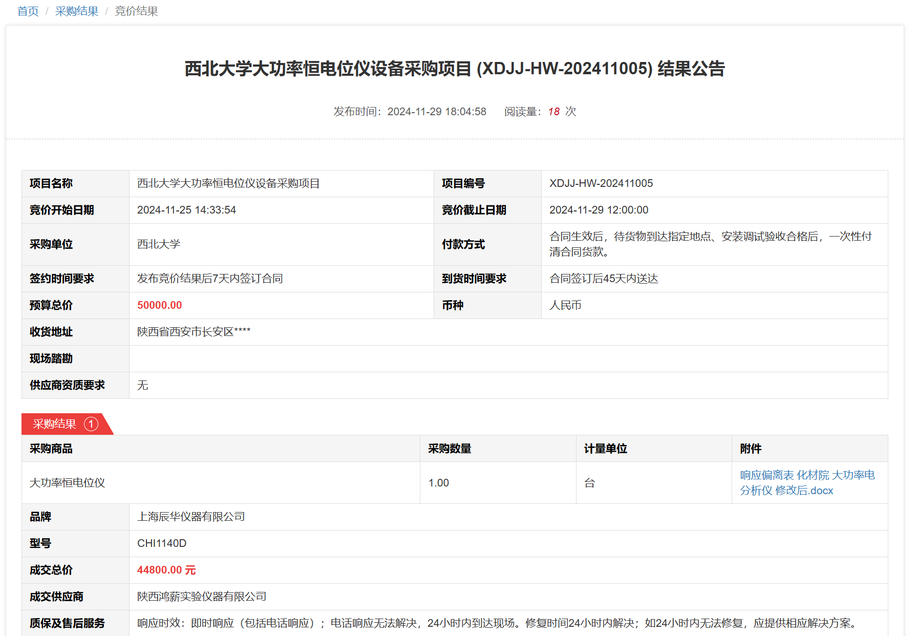 广发体育大功率恒电位仪设备采购项目(XDJJ-HW-202411005)竞价结果公告 作者:采购与招标办公室 编辑: 时间:2024-11-29 原公告链接:https://www.ejingcai.com.cn/site/bidding/detail/15509