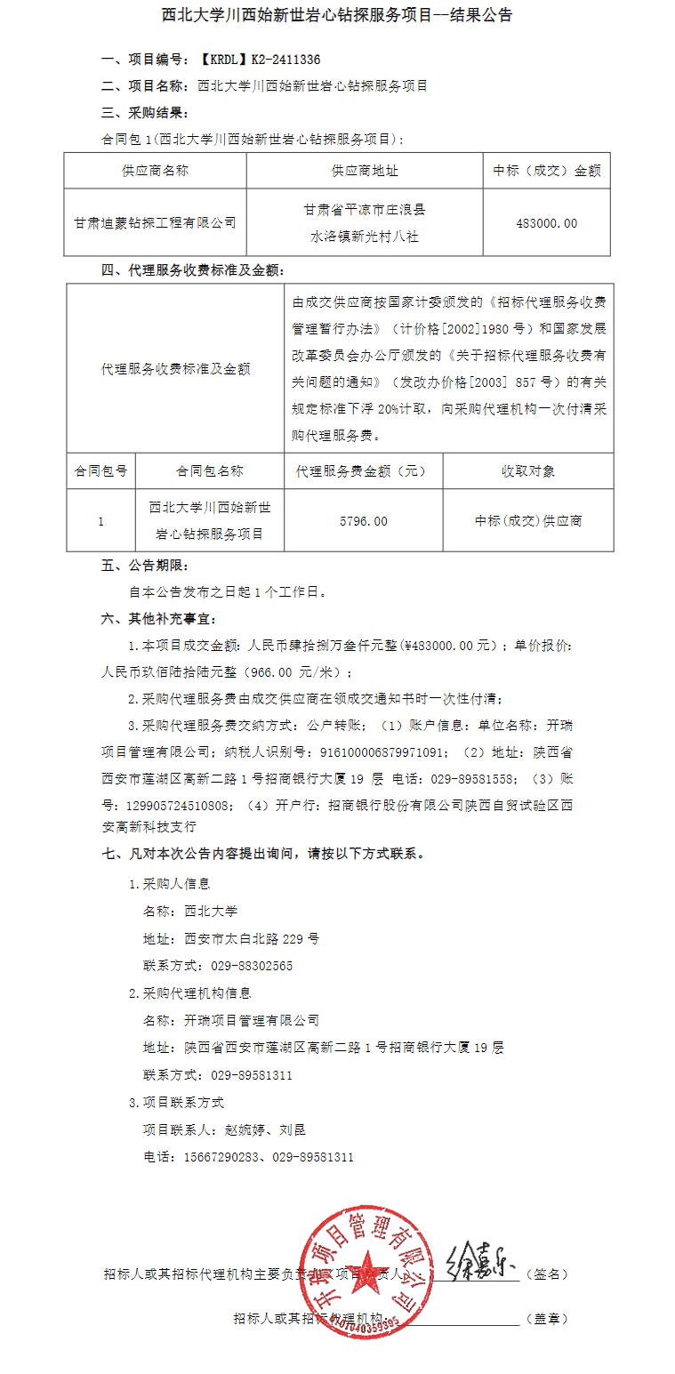 广发体育西安市古生物信息学重点实验室岩芯钻取服务项目结果公告
