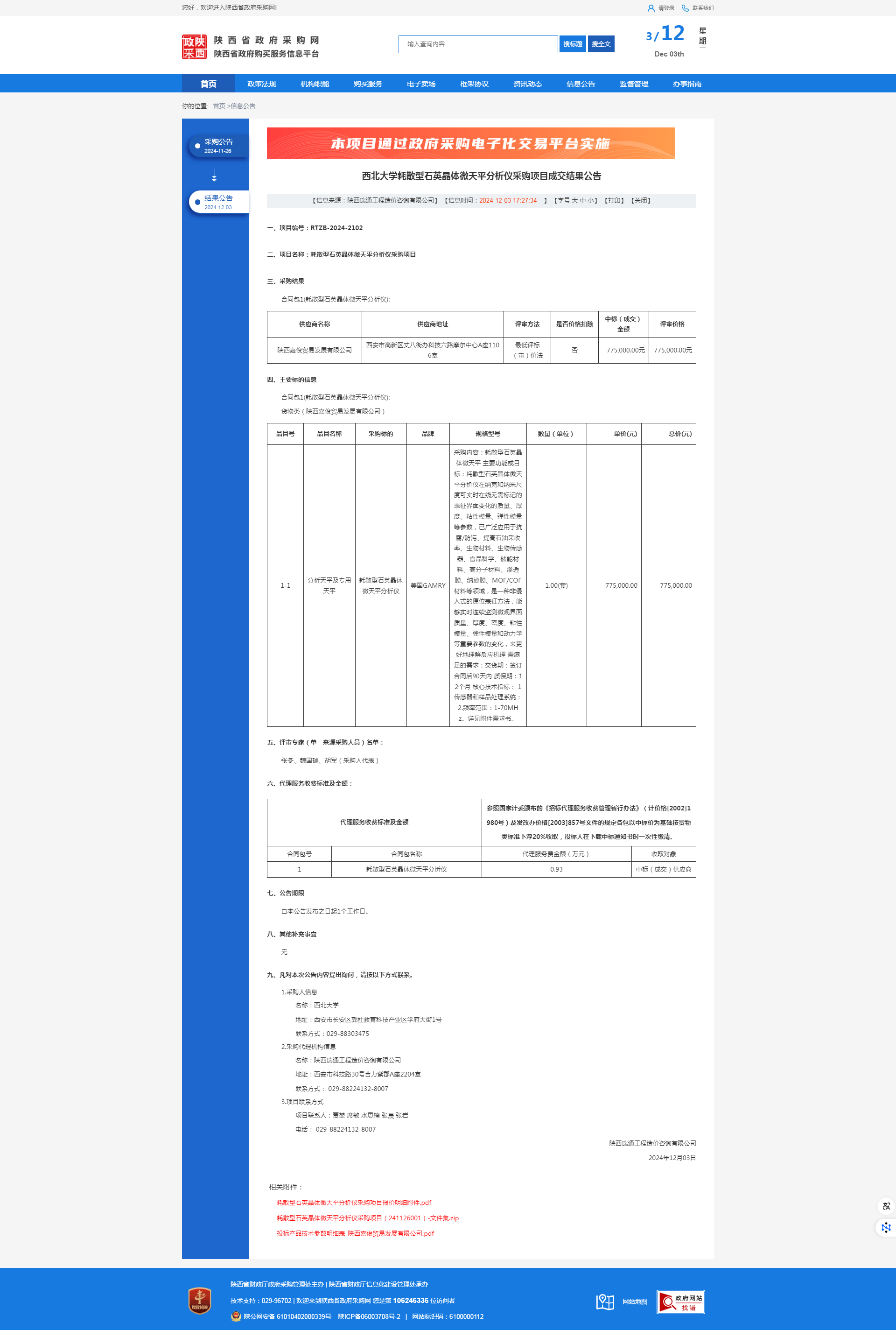 广发体育耗散型石英晶体微天平分析仪采购项目成交结果公告 作者:采购与招标办公室 编辑: 时间:2024-12-03 原公告链接:https://www.ccgp-shaanxi.gov.cn/freecms/site/shaanxi/ggxx/info/2024/8a69c2519218573701938bc3ac1a16c6.html?noticeType=001023¬iceId=6e7b31eb-b15a-11ef-8063-08c0eb20c666