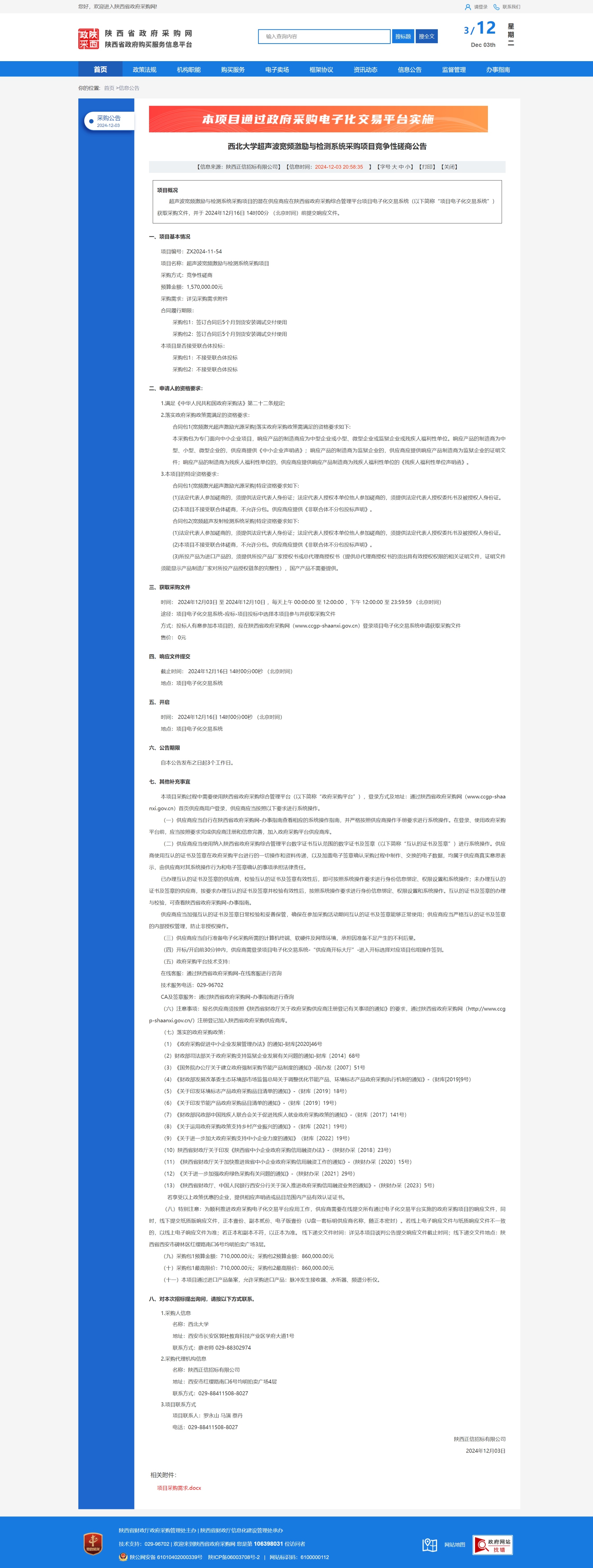 广发体育超声波宽频激励与检测系统采购项目竞争性磋商公告 作者: 编辑:薛利娟 时间:2024-12-03 原公告链接:https://www.ccgp-shaanxi.gov.cn/freecms/site/shaanxi/ggxx/info/2024/8a69c2519218573701938c6e21a55ceb.html?noticeType=001016¬iceId=e936ad5a-b177-11ef-8063-08c0eb20c666