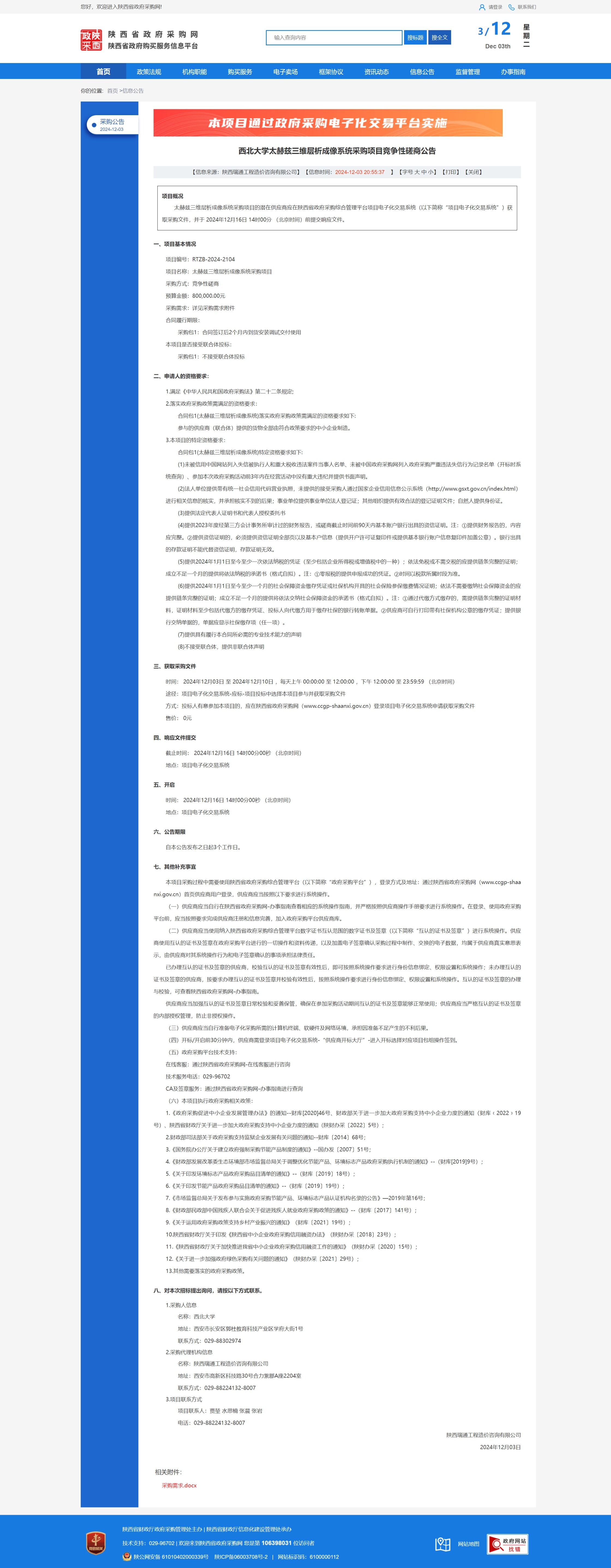 广发体育太赫兹三维层析成像系统采购项目竞争性磋商公告 作者: 编辑:薛利娟 时间:2024-12-03 原公告链接:https://www.ccgp-shaanxi.gov.cn/freecms/site/shaanxi/ggxx/info/2024/8a69c95d921859f001938c91d623402a.html?noticeType=001016¬iceId=7f0f6e3e-b177-11ef-8063-08c0eb20c666
