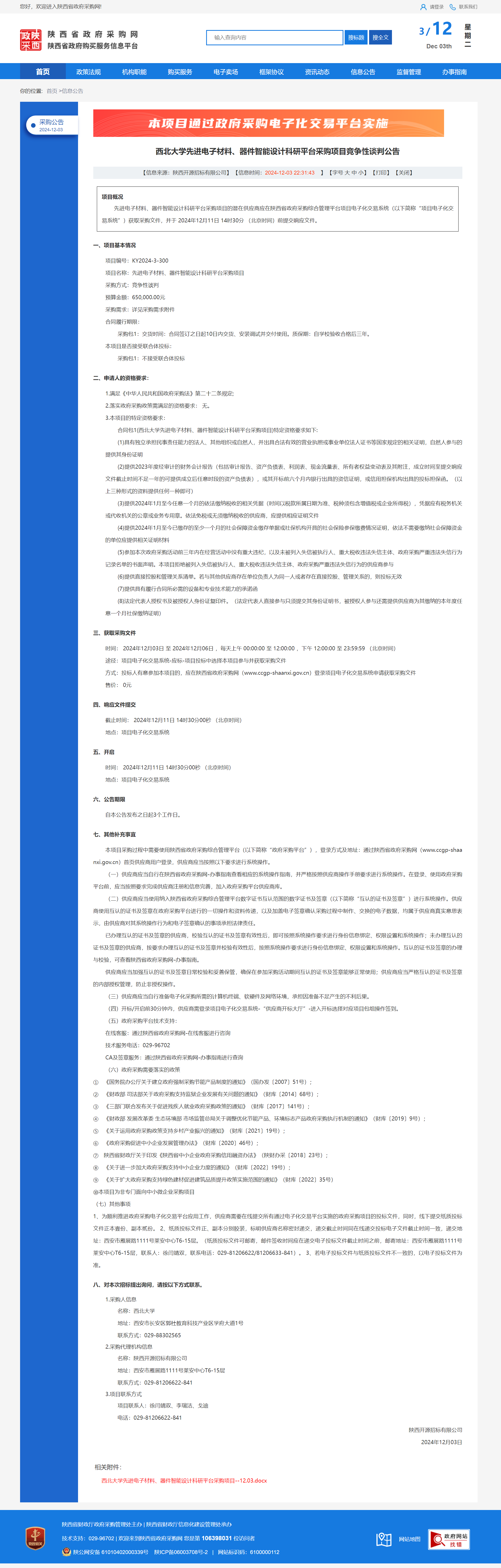广发体育先进电子材料、器件智能设计科研平台采购项目竞争性谈判公告