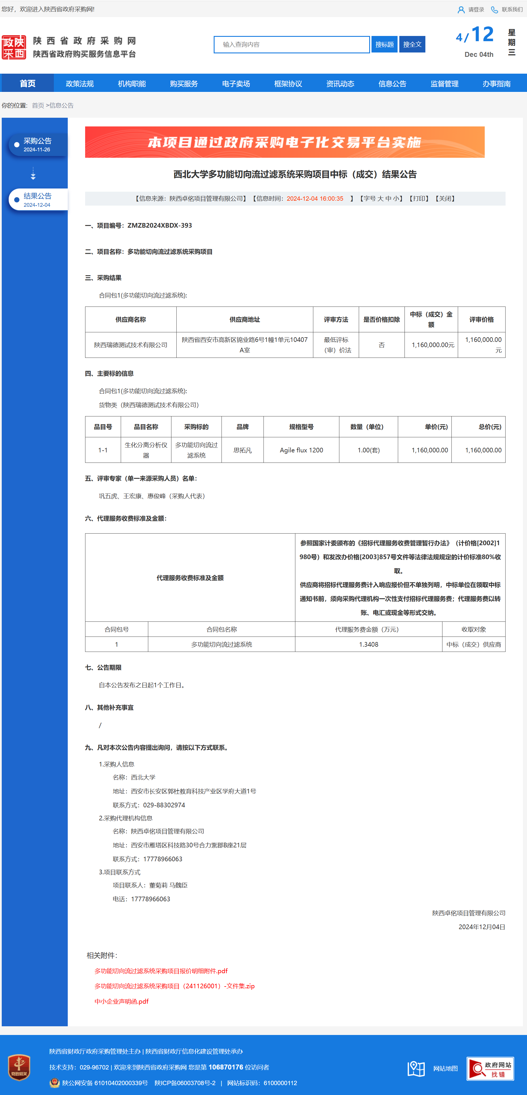 广发体育多功能切向流过滤系统采购项目中标(成交)结果公告 作者:采购与招标办公室 编辑: 时间:2024-12-04 原公告链接:https://www.ccgp-shaanxi.gov.cn/freecms/site/shaanxi/ggxx/info/2024/8a69c251921857370193906a95e723a6.html?noticeType=001023¬iceId=72dcd5e1-b217-11ef-8063-08c0eb20c666