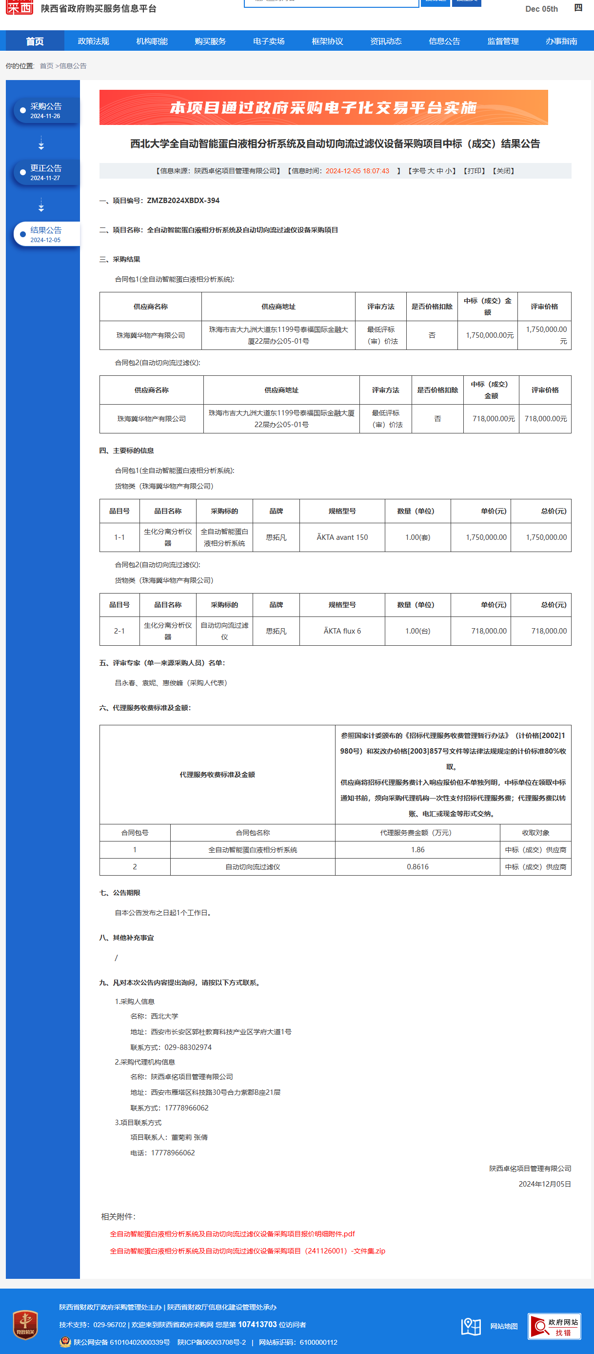 广发体育全自动智能蛋白液相分析系统及自动切向流过滤仪设备采购项目中标(成交)结果公告 作者:采购与招标办公室 编辑: 时间:2024-12-05 原公告链接:https://www.ccgp-shaanxi.gov.cn/freecms/site/shaanxi/ggxx/info/2024/8a69c44e9218572b01939643fffe267c.html?noticeType=001023¬iceId=5fe3fe15-b2f2-11ef-8063-08c0eb20c666
