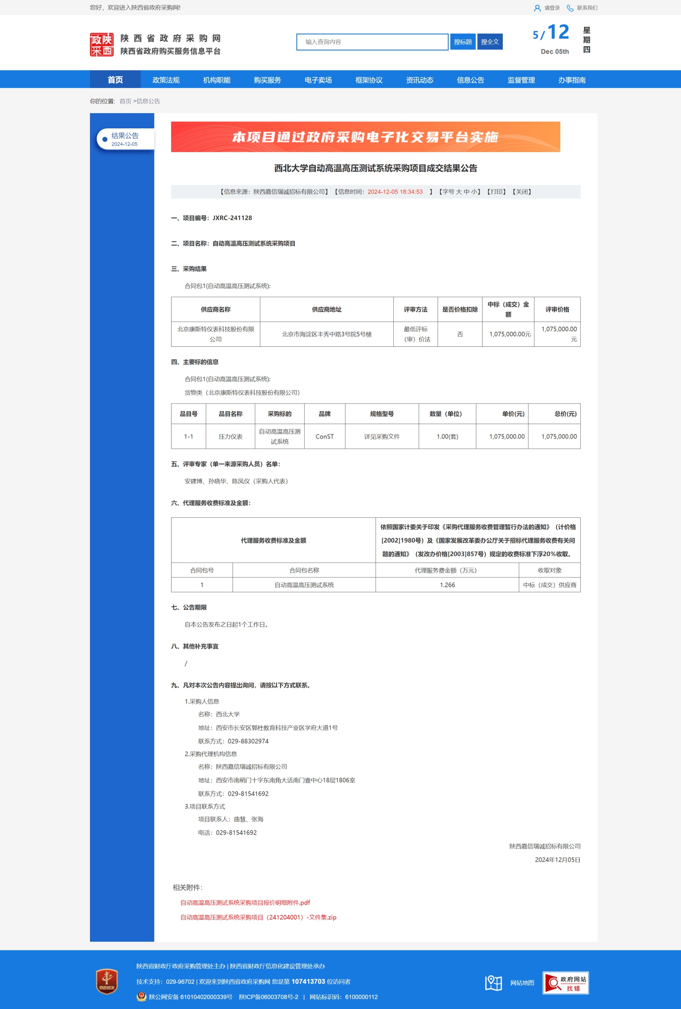 广发体育自动高温高压测试系统采购项目成交结果公告 作者: 编辑:薛利娟 时间:2024-12-05 原公告链接:https://www.ccgp-shaanxi.gov.cn/freecms/site/shaanxi/ggxx/info/2024/8a69c5a59218576d01939654b6ea6e08.html?noticeType=001025¬iceId=2b8dbe2f-b2f6-11ef-8063-08c0eb20c666