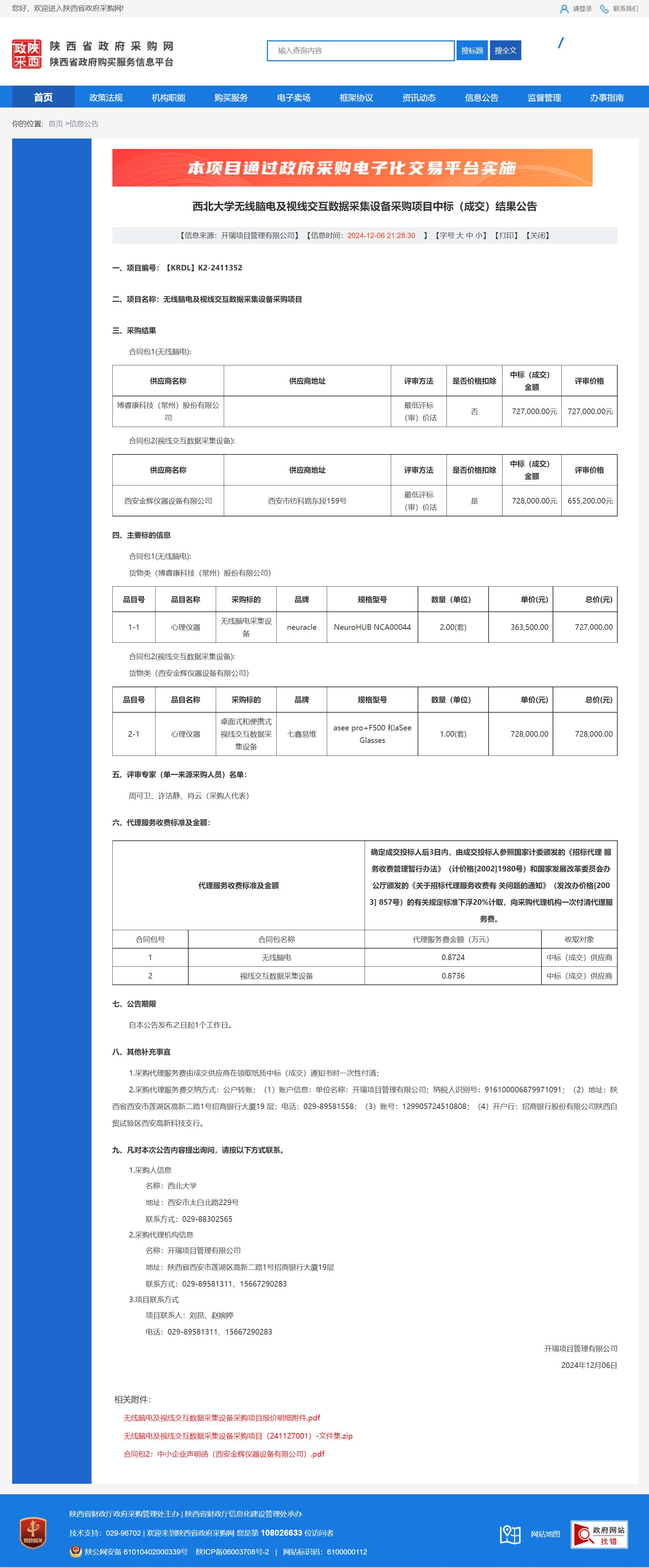 广发体育无线脑电及视线交互数据采集设备采购项目中标(成交)结果公告