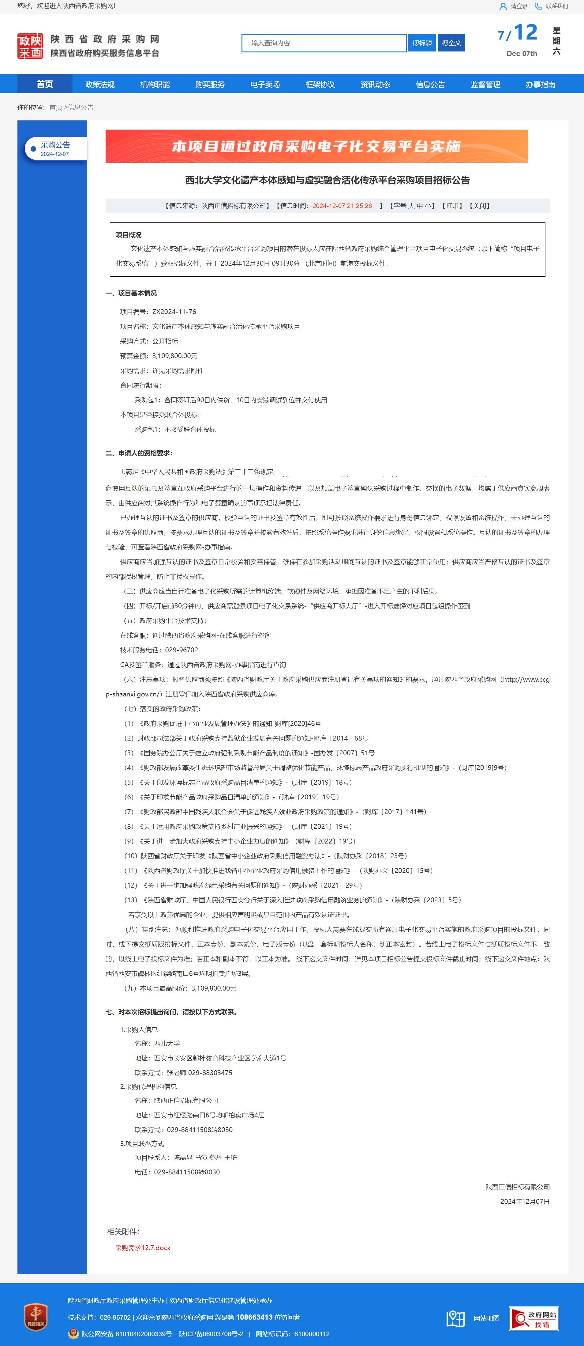 广发体育文化遗产本体感知与虚实融合活化传承平台采购项目招标公告