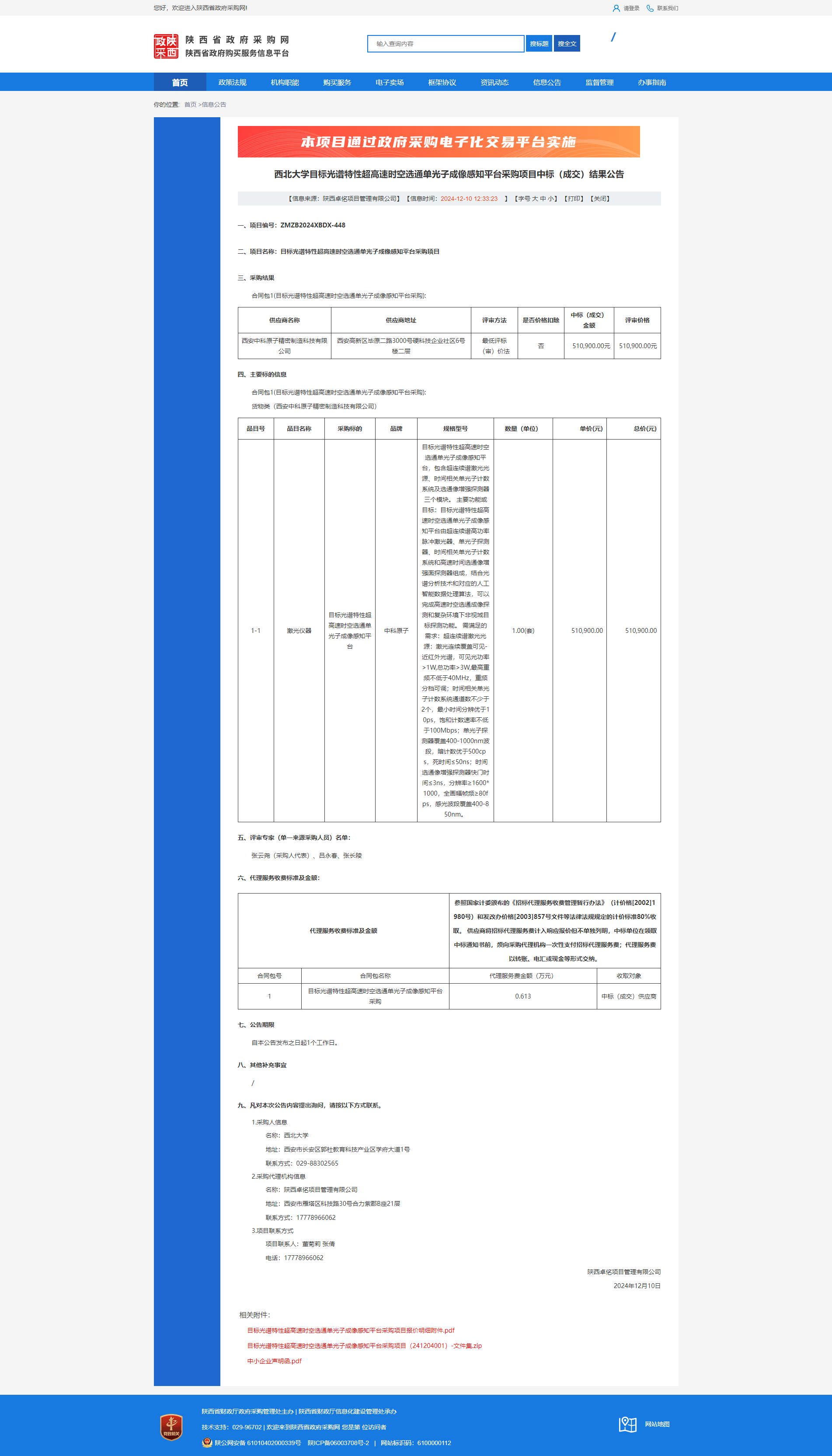 广发体育目标光谱特性超高速时空选通单光子成像感知平台采购项目中标(成交)结果公告