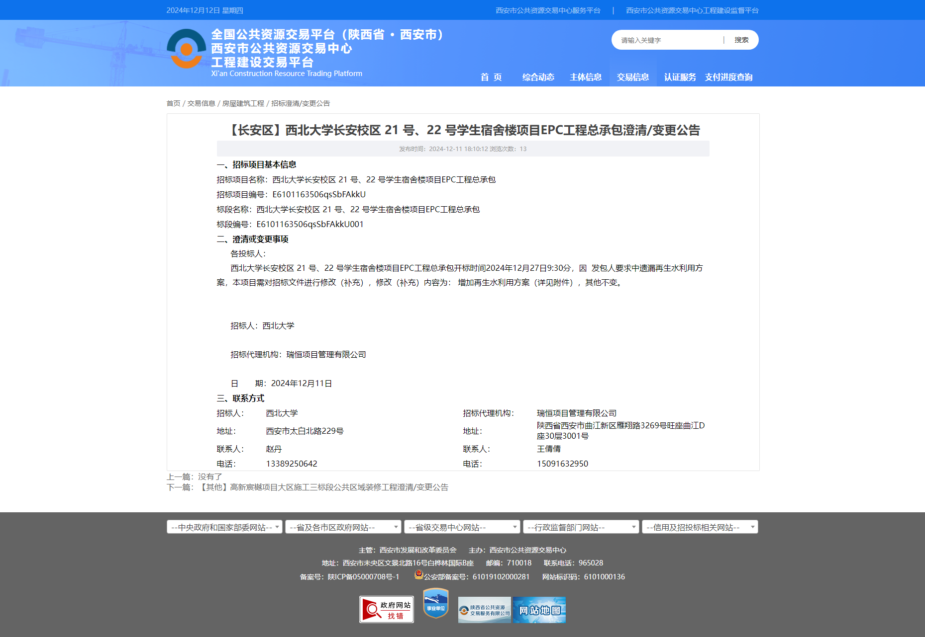 广发体育长安校区 21 号、22 号学生宿舍楼项目EPC工程总承包澄清/变更公告