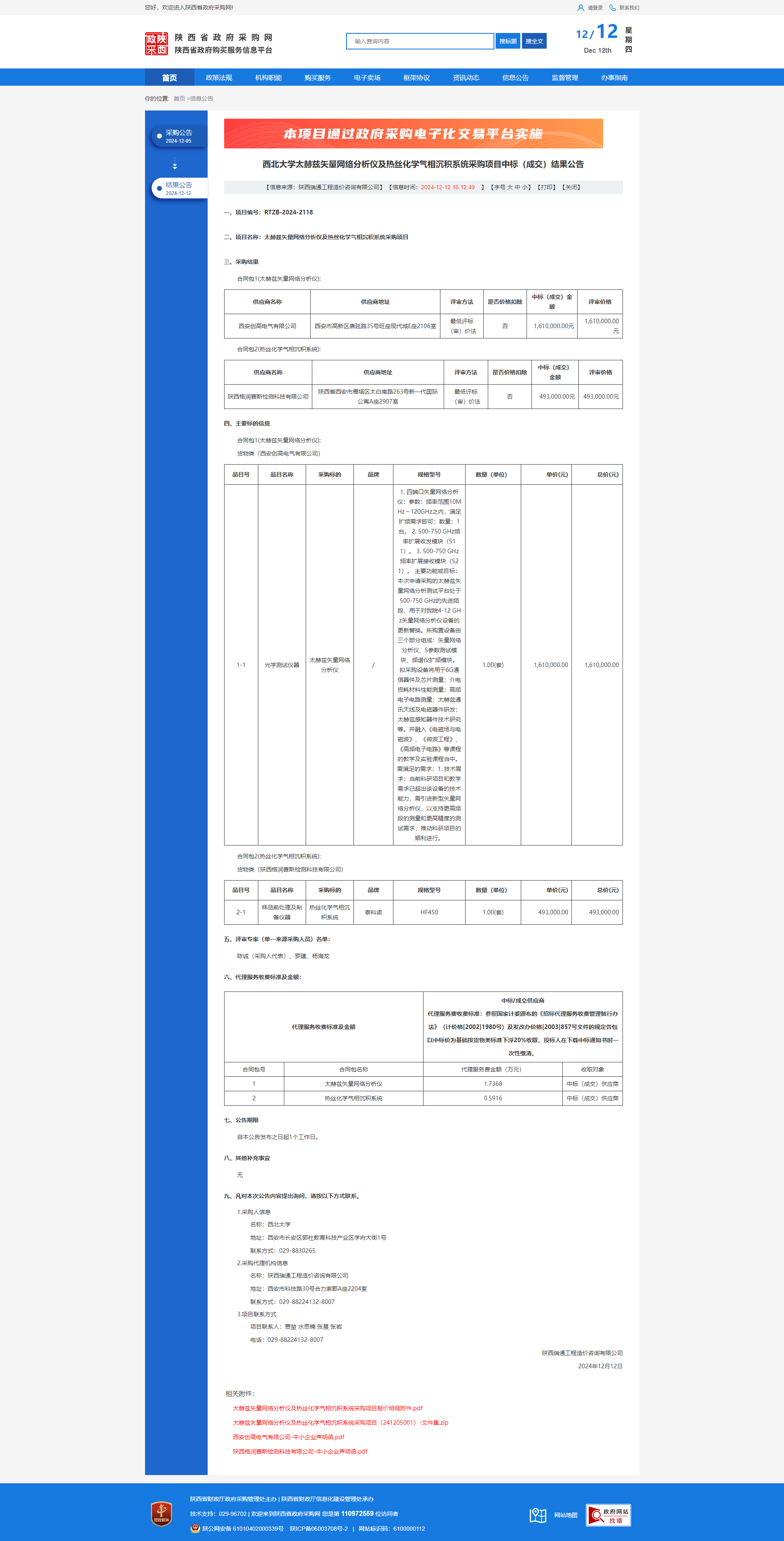 广发体育太赫兹矢量网络分析仪及热丝化学气相沉积系统采购项目中标(成交)结果公告