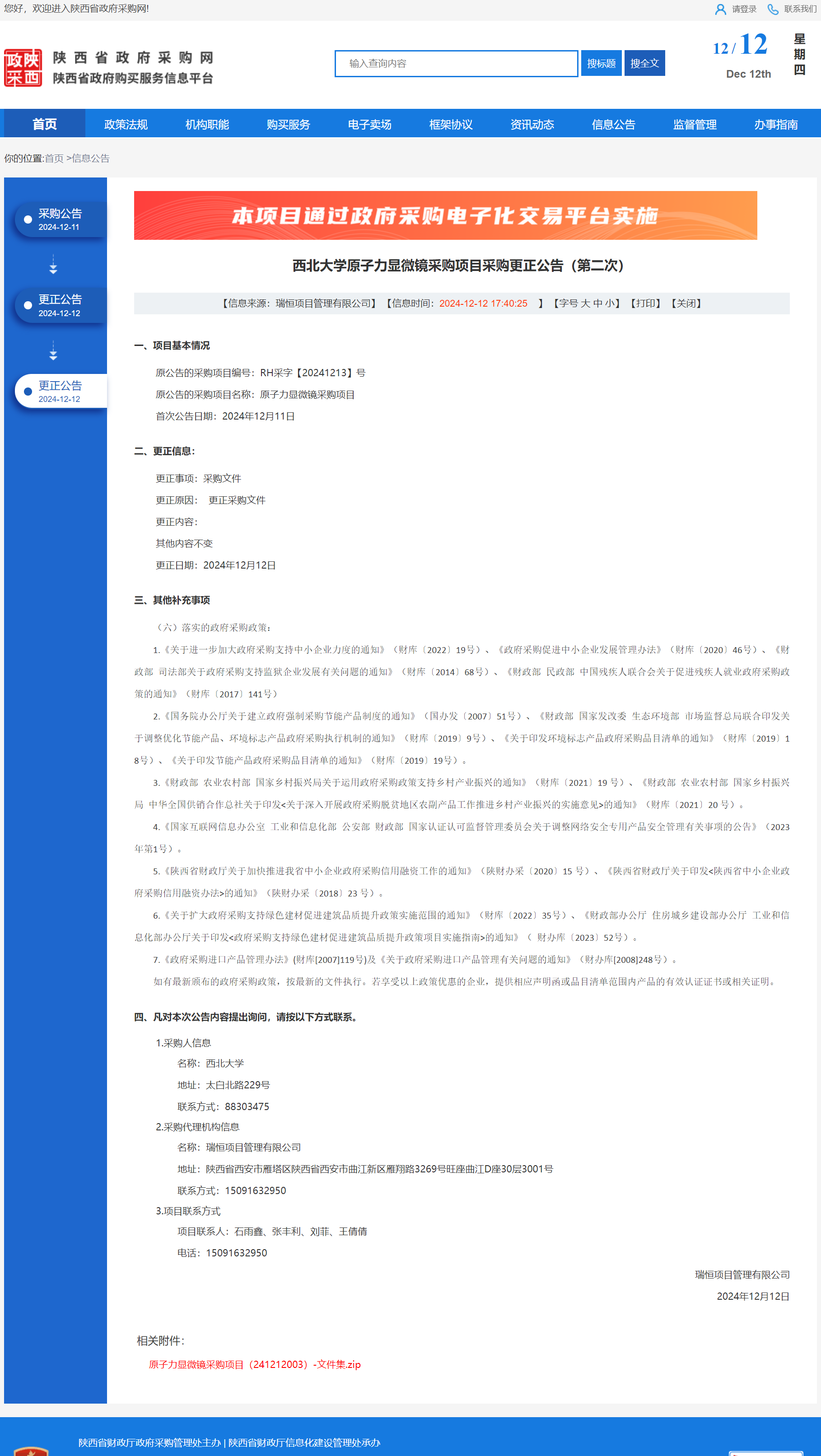 广发体育原子力显微镜采购项目采购更正公告(第二次) 作者:采购与招标办公室 编辑: 时间:2024-12-12 原公告链接:https://www.ccgp-shaanxi.gov.cn/freecms/site/shaanxi/ggxx/info/2024/8a69c5a59218576d0193ba3c419e1460.html?noticeType=001031¬iceId=bbffc791-b86e-11ef-8063-08c0eb20c666