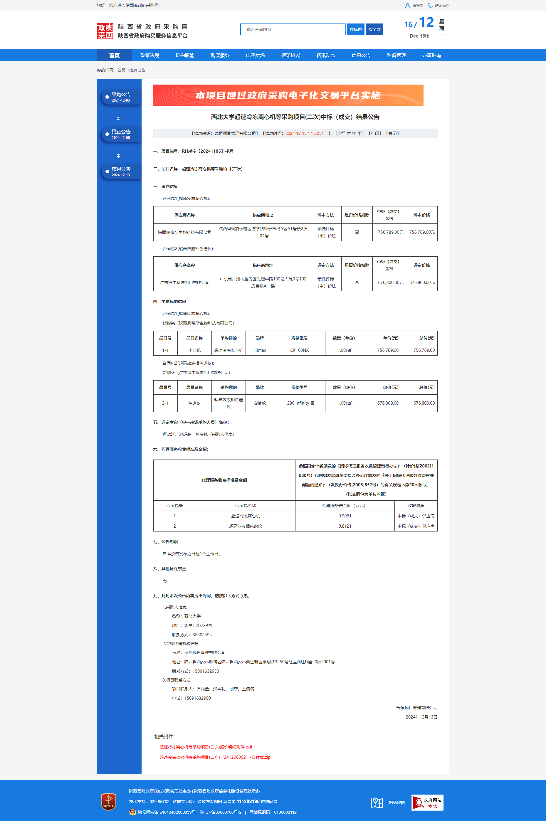 广发体育超速冷冻离心机等采购项目(二次)中标(成交)结果公告