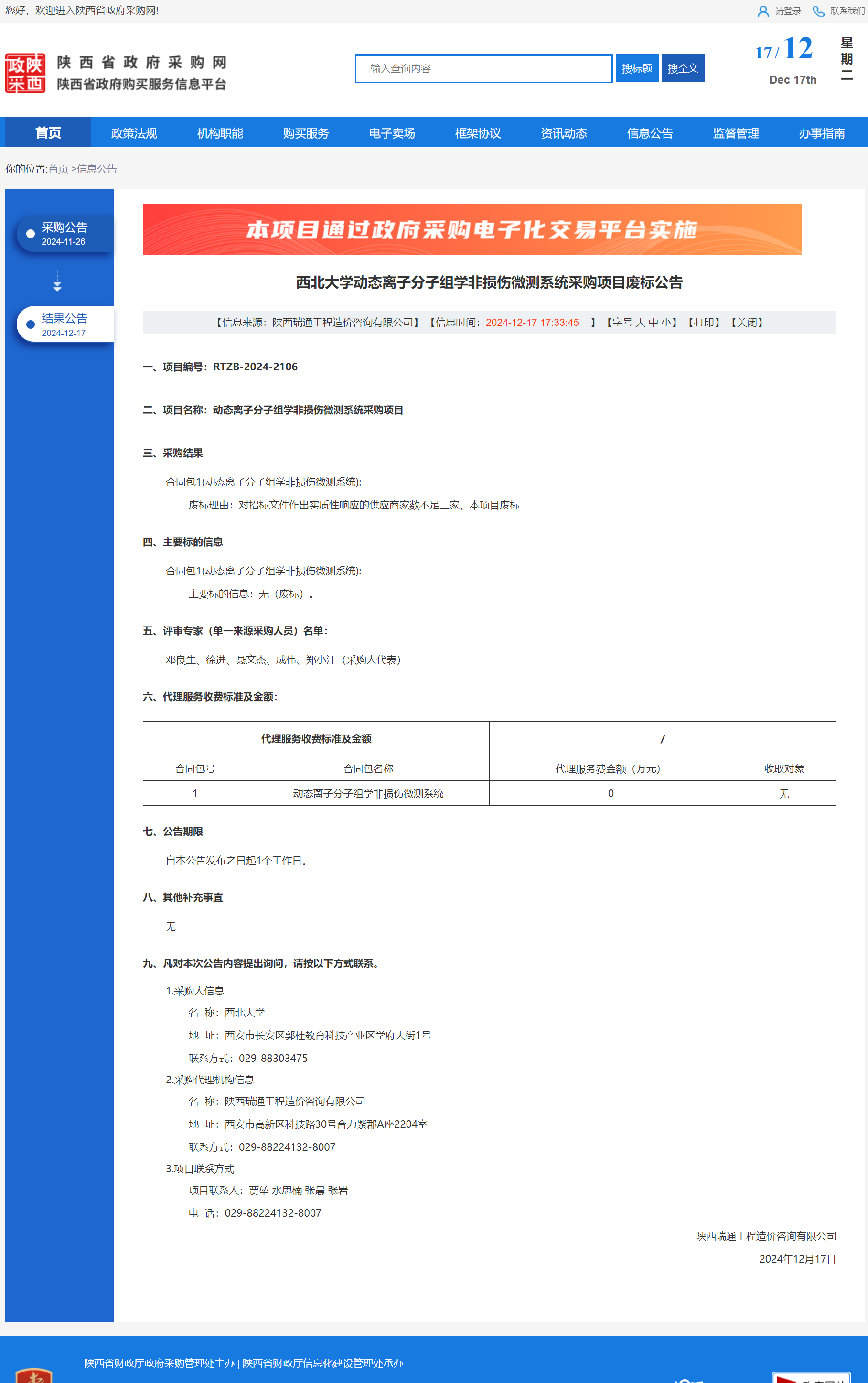 广发体育动态离子分子组学非损伤微测系统采购项目废标公告 作者:采购与招标办公室 编辑: 时间:2024-12-17 原公告链接:http://www.ccgp-shaanxi.gov.cn/freecms/site/shaanxi/ggxx/info/2024/8a69c5a59218576d0193d3ef8a485b79.html?noticeType=001006¬iceId=a477f0fe-bc5b-11ef-8063-08c0eb20c666