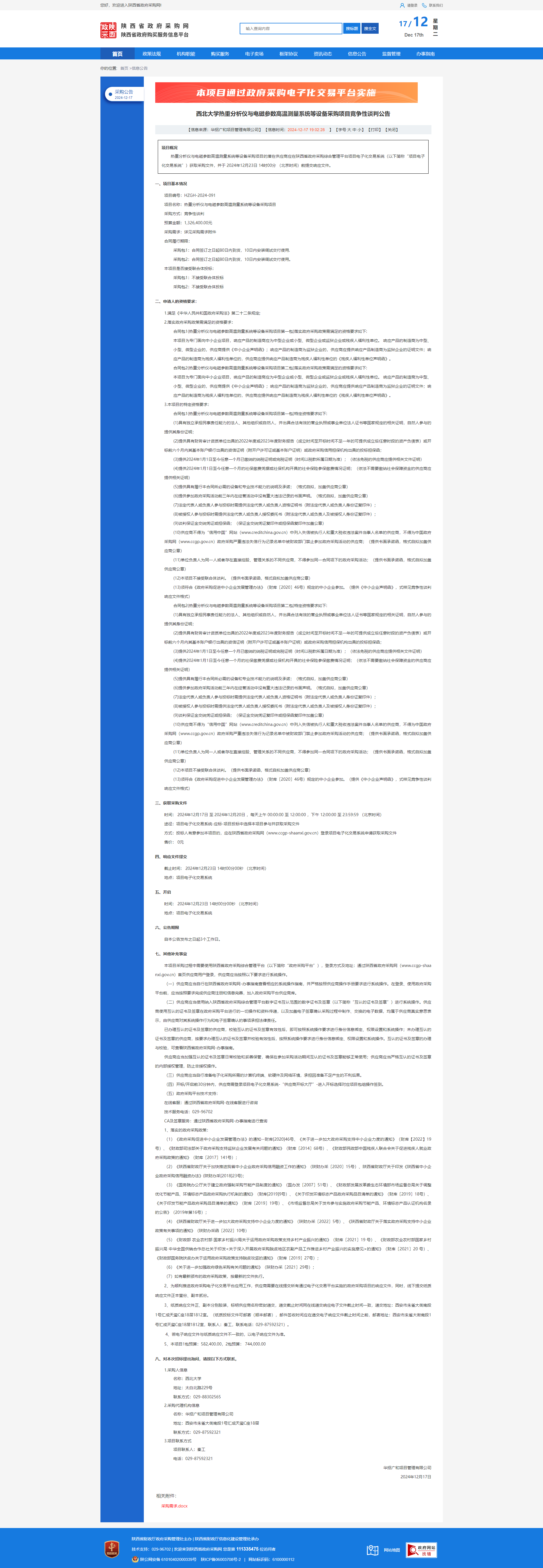 广发体育热重分析仪与电磁参数高温测量系统等设备采购项目竞争性谈判公告