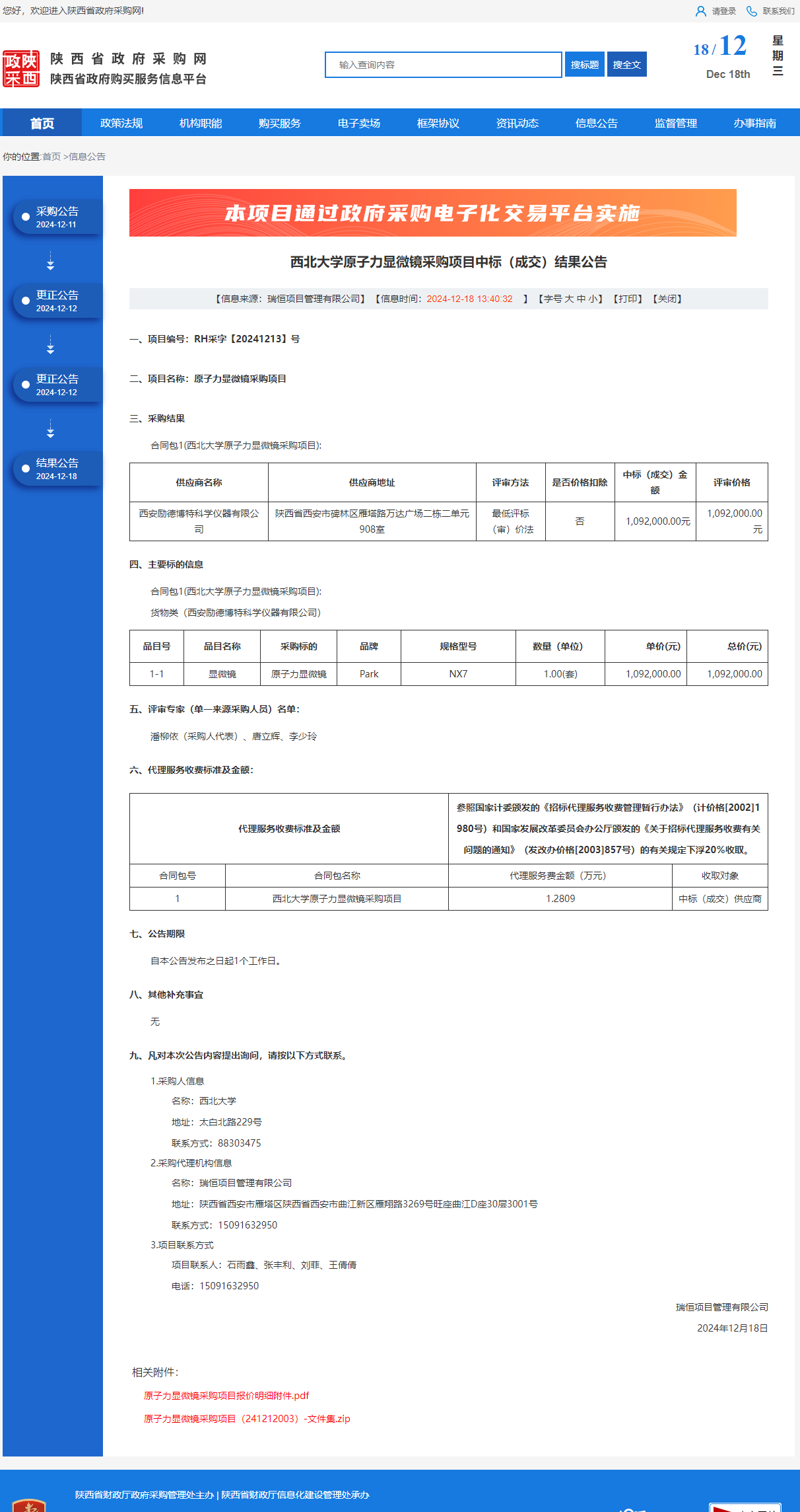 广发体育原子力显微镜采购项目中标(成交)结果公告