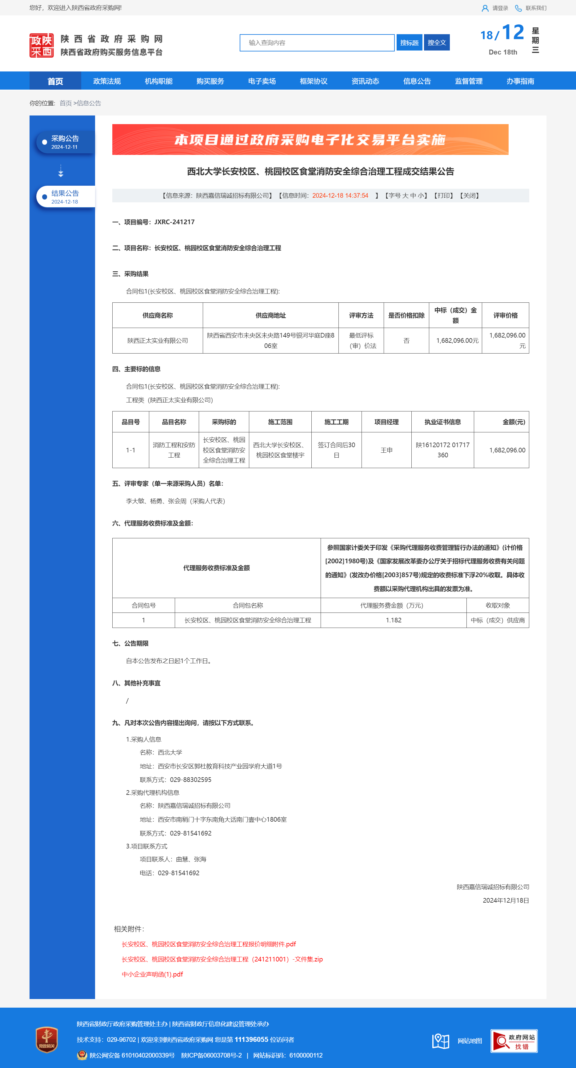 广发体育长安校区、桃园校区食堂消防安全综合治理工程成交结果公告