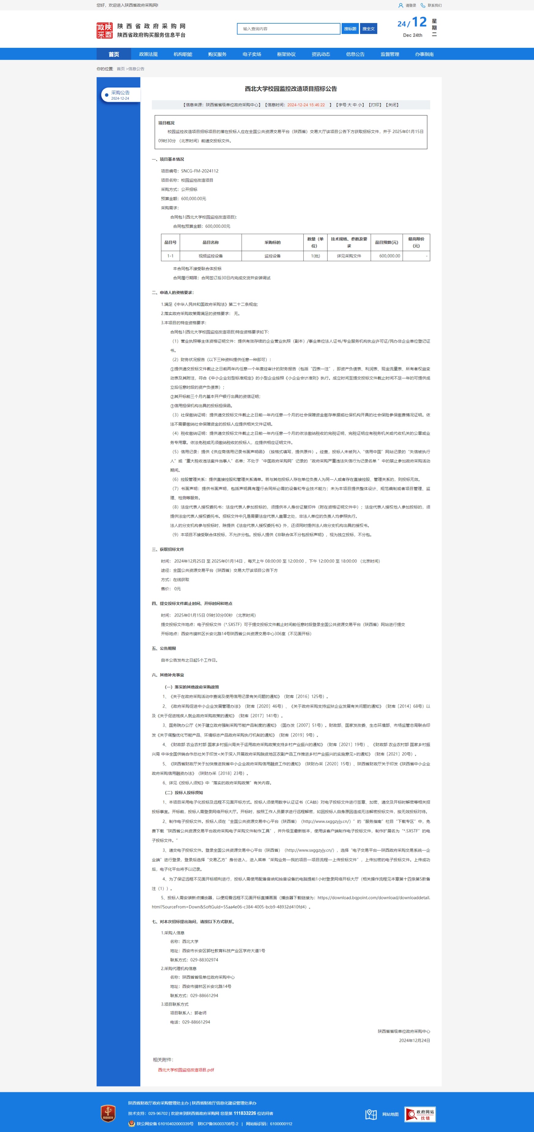 原公告链接:https://www.ccgp-shaanxi.gov.cn/freecms/site/shaanxi/ggxx/info/2024/8a69c95d921859f00193f765d16522d0.html?noticeType=001011&noticeId=d06e0e57-c1cc-11ef-8063-08c0eb20c666
