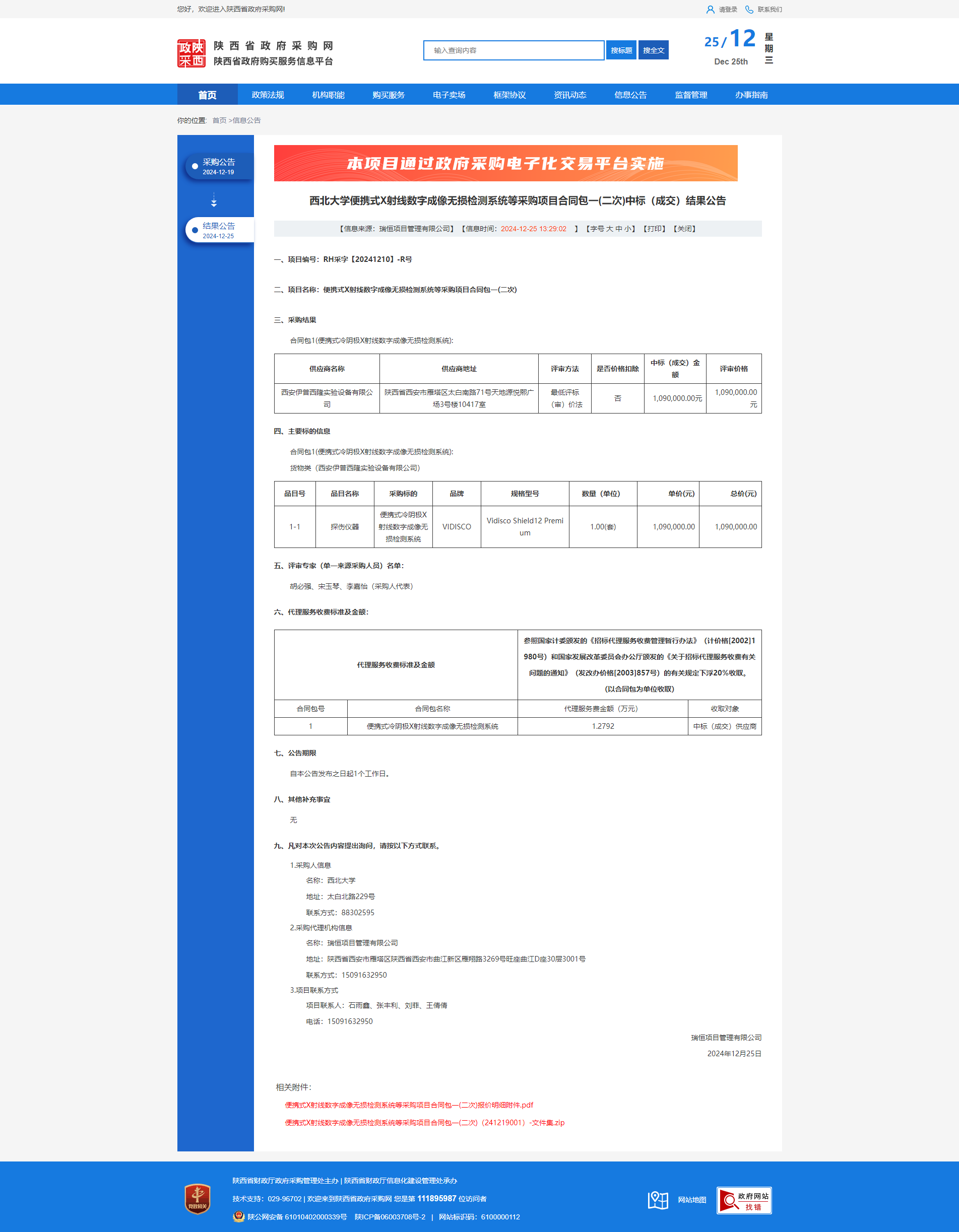广发体育便携式X射线数字成像无损检测系统等采购项目合同包一(二次)中标(成交)结果公告
