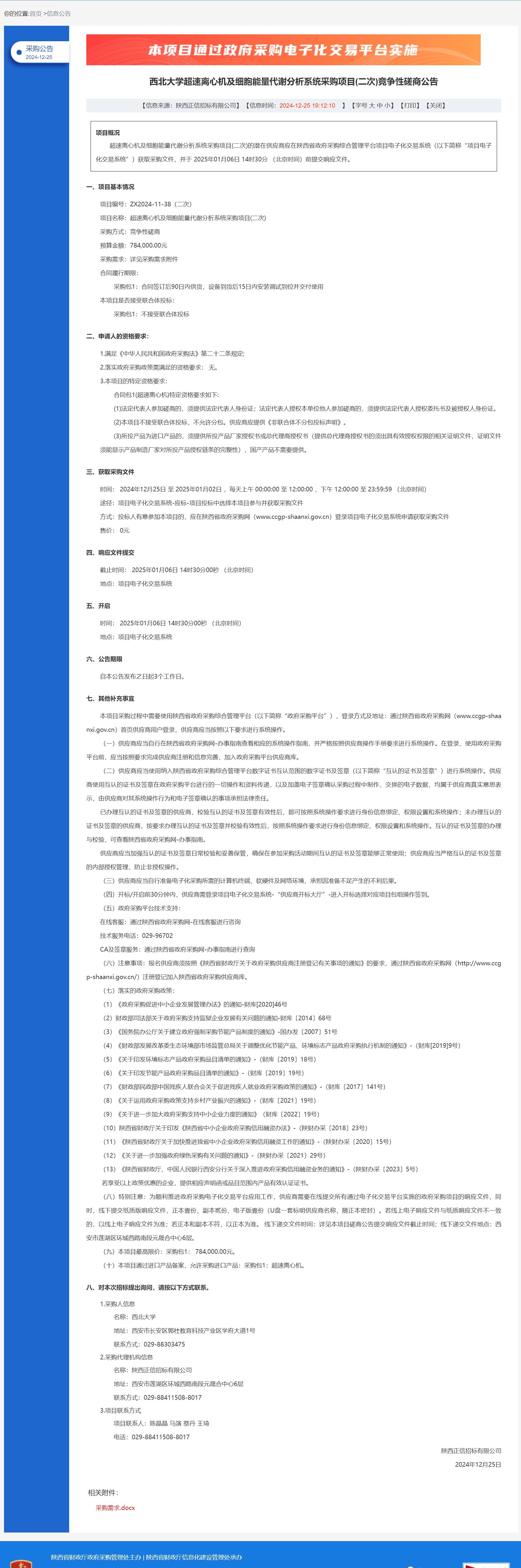 原公告链接:https://www.ccgp-shaanxi.gov.cn/freecms/site/shaanxi/ggxx/info/2024/8a69c44e9218572b0193fd6e7f5f4622.html?noticeType=001016&noticeId=bb6eaae2-c2b2-11ef-8063-08c0eb20c666