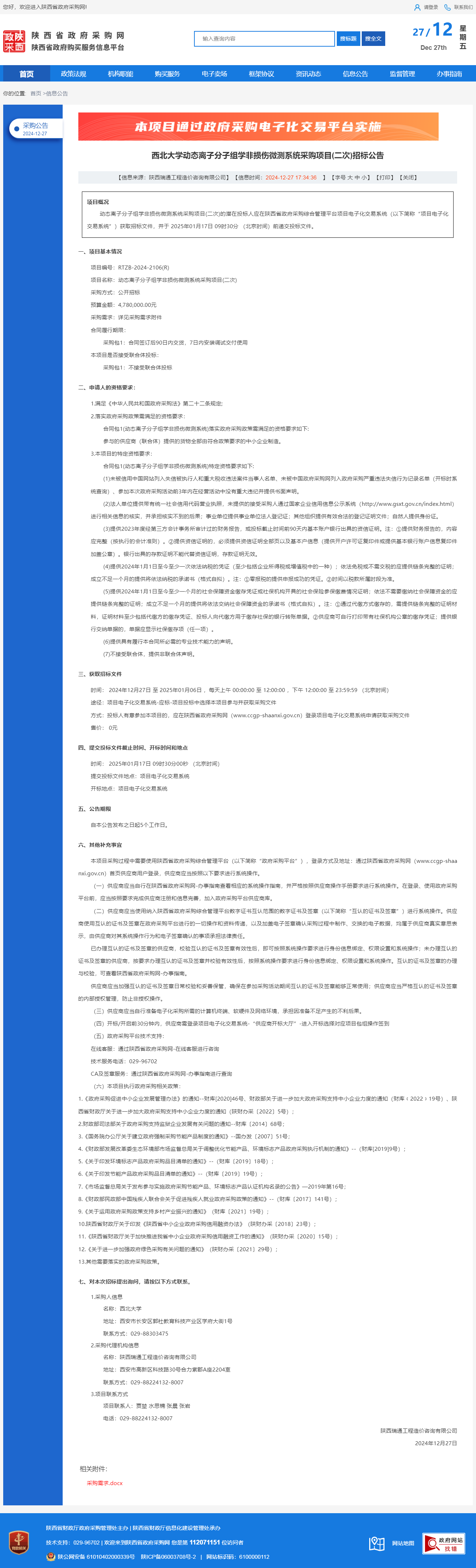 原公告链接:http://www.ccgp-shaanxi.gov.cn/freecms/site/shaanxi/ggxx/info/2024/8a69c5a59218576d019407700c364918.html?noticeType=001011&noticeId=6f721510-c437-11ef-8063-08c0eb20c666