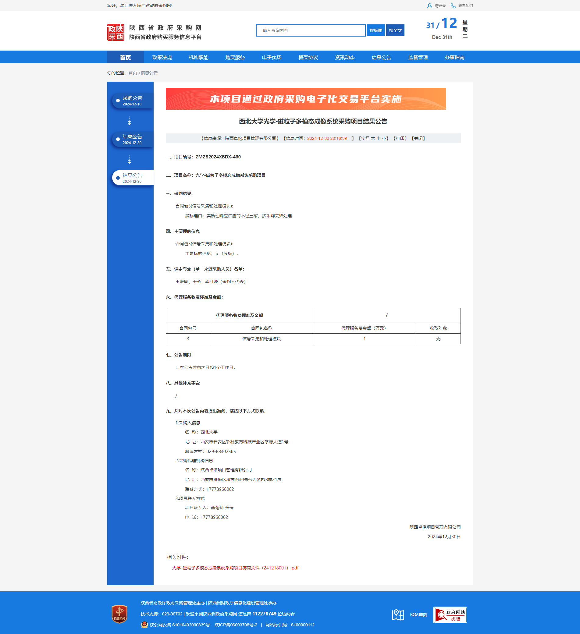 广发体育光学-磁粒子多模态成像系统采购项目中标(成交)结果公告