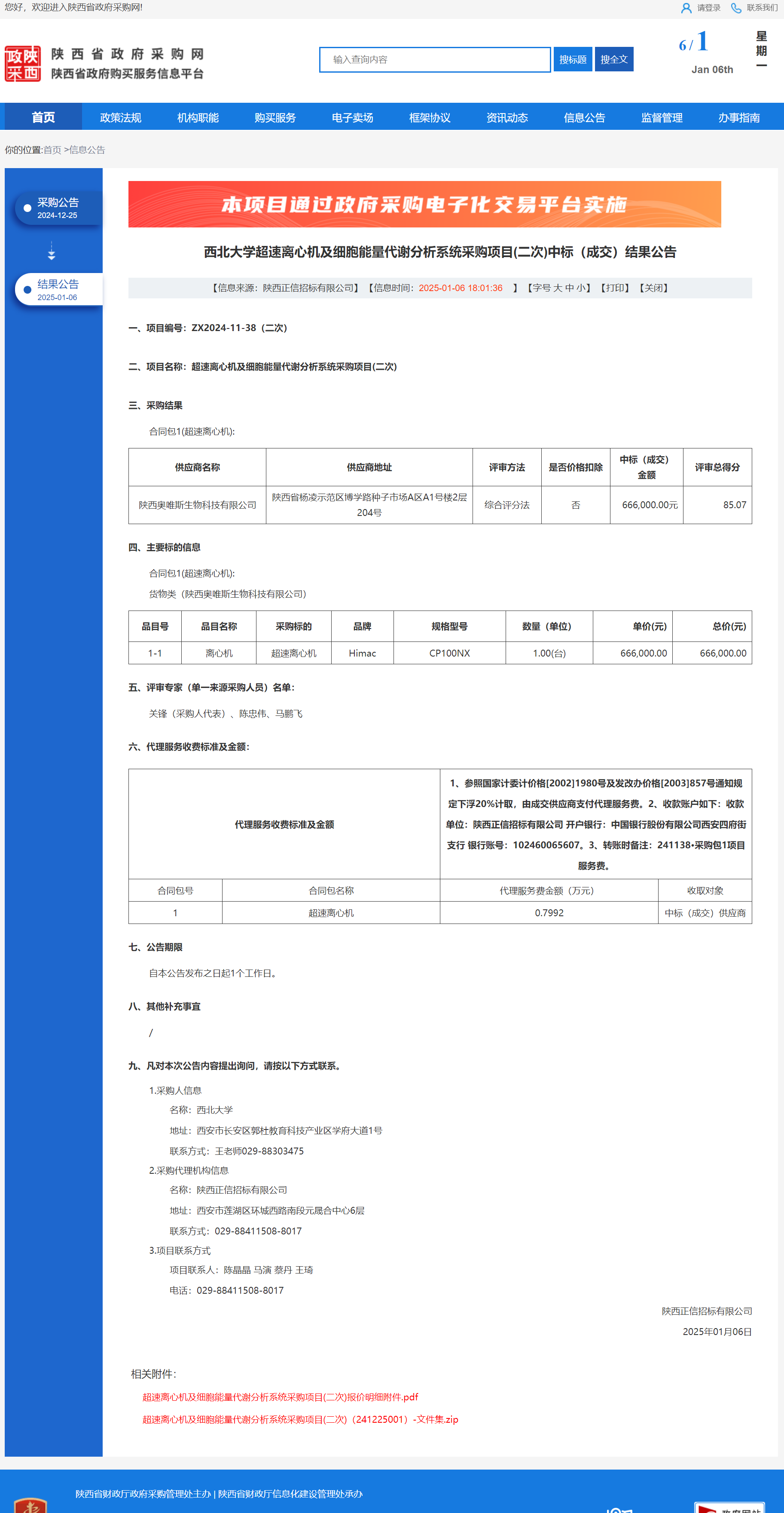 广发体育超速离心机及细胞能量代谢分析系统采购项目(二次)中标(成交)结果公告 作者:采购与招标办公室 编辑: 时间:2025-01-06 原公告链接:https://www.ccgp-shaanxi.gov.cn/freecms/site/shaanxi/ggxx/info/2025/8a69c2519218573701943b083d2b112d.html?noticeType=001026¬iceId=e26ca62a-cc16-11ef-8063-08c0eb20c666