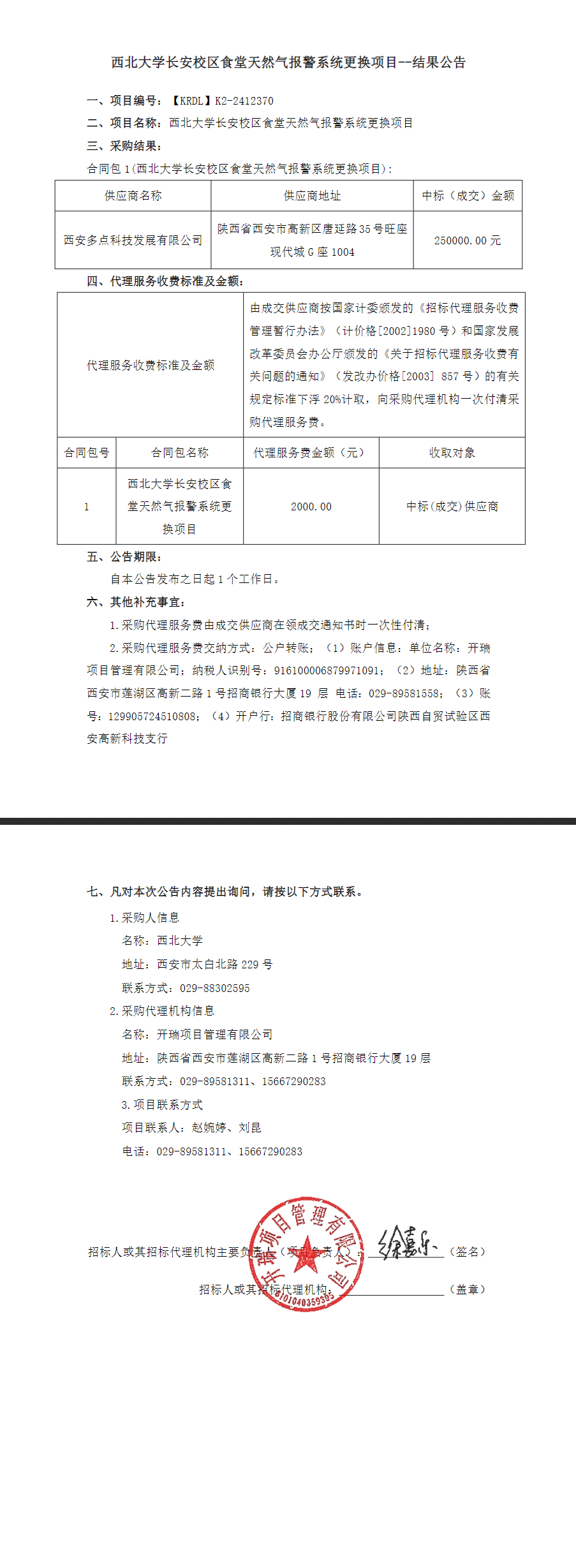 广发体育长安校区食堂天然气报警系统更换项目结果公告