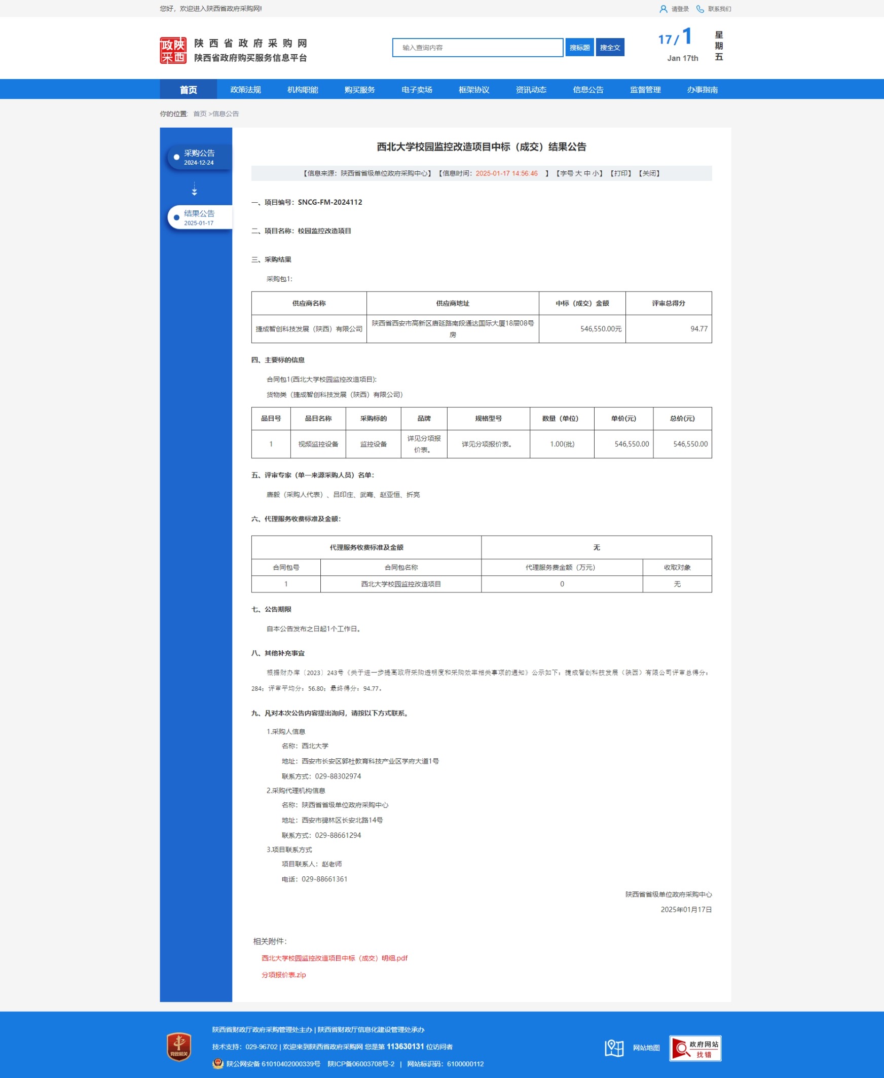 广发体育校园监控改造项目中标(成交)结果公告 作者: 编辑:薛利娟 时间:2025-01-17 原公告链接:https://www.ccgp-shaanxi.gov.cn/freecms/site/shaanxi/ggxx/info/2025/8a69c46994554cc2019471c2fbea2f8d.html?noticeType=001021¬iceId=e7f16300-d4a1-11ef-8063-08c0eb20c666