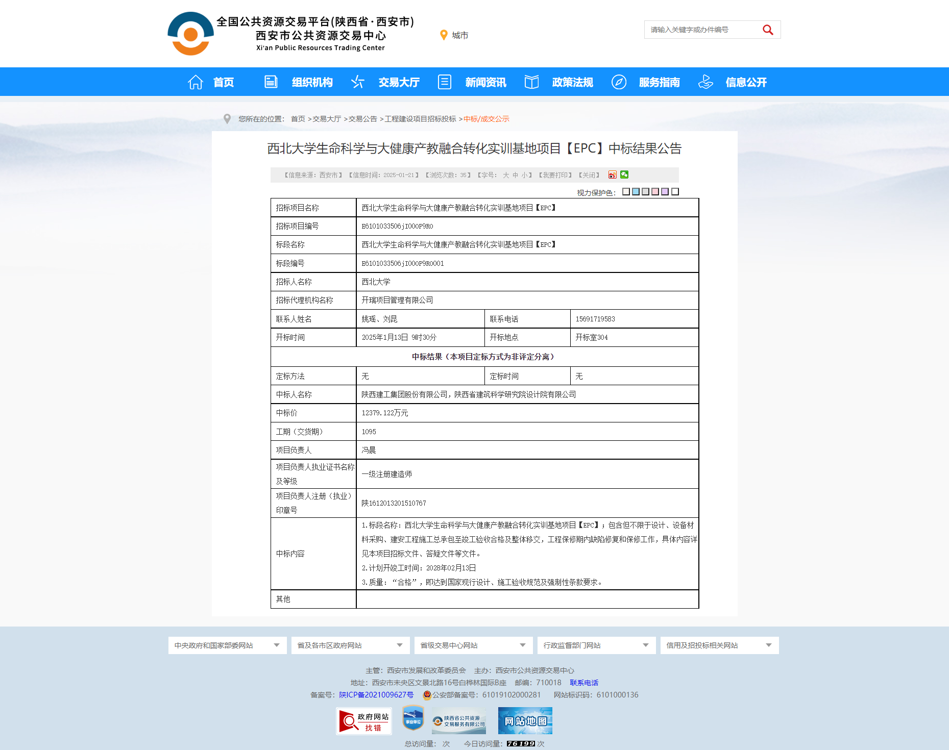 广发体育生命科学与大健康产教融合转化实训基地项目【EPC】中标结果公告